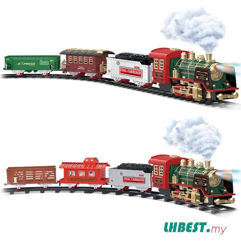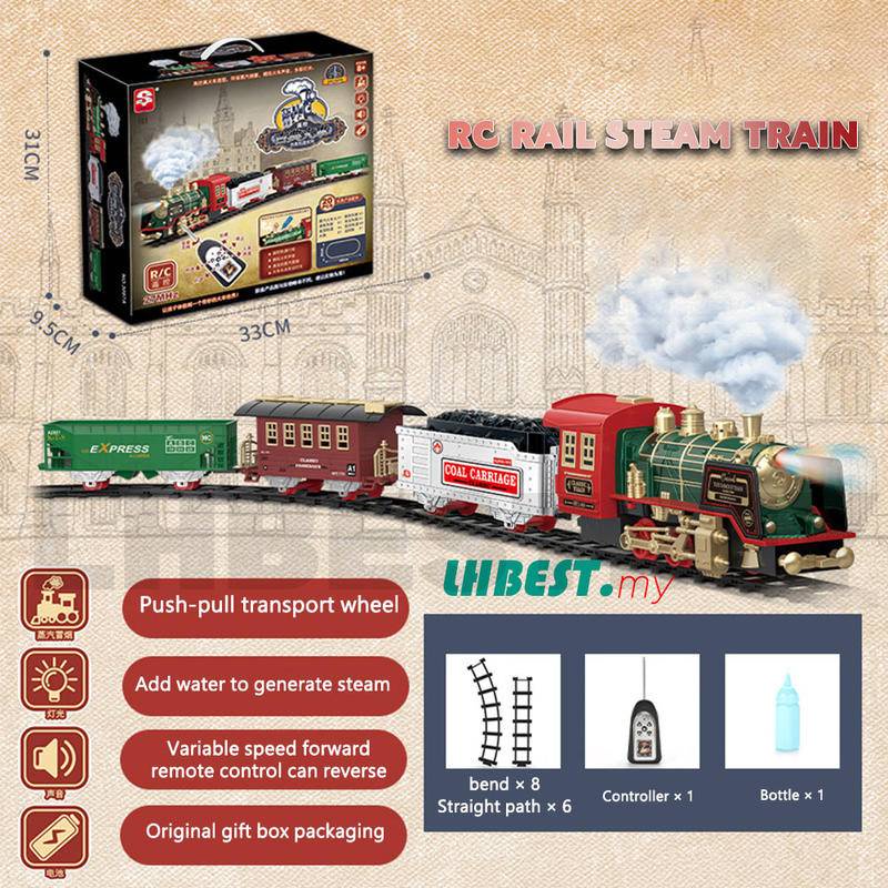 Remote Control Electric Classical Steam Train Set Vehicles Christmas Present RC Car Smoke LED Lights Music Sound Remote Control Trains Toy for Kids