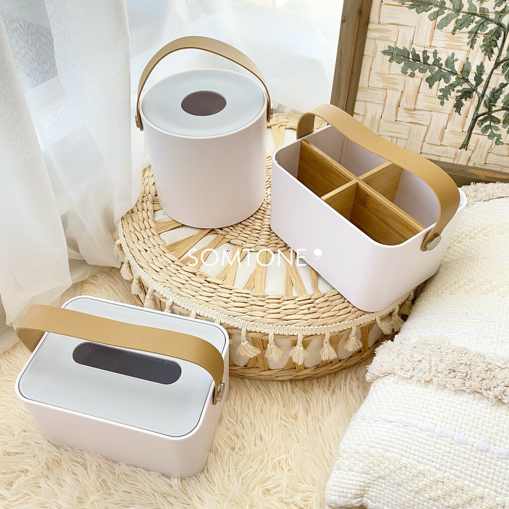Remote Control Holder Organizer Table Storage Box, Napkin and Tissue Box Holder with Leather Handle for Home and Living