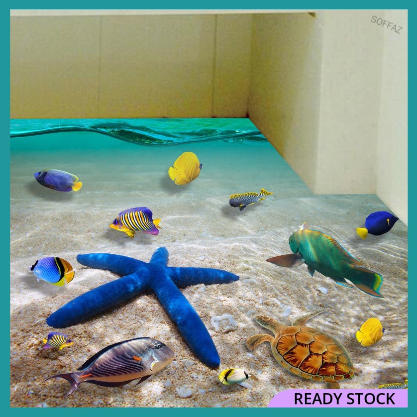 Removable Beach Sea 3D Wall Sticker Waterproof Starfish Floor Stickers Decals Kid Stiker Dinding Lantai Pantai Budak