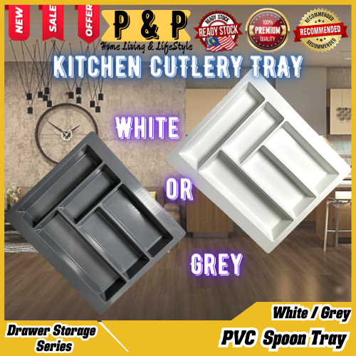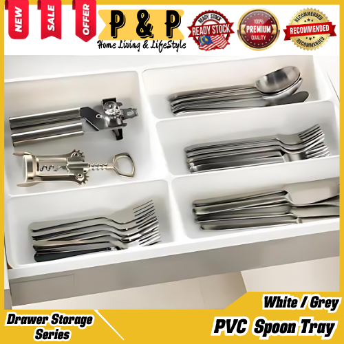 [ GREY & WHITE ] PVC Spoon Tray Fork Knife Cutlery Tray Drawer Kitchen Cabinet