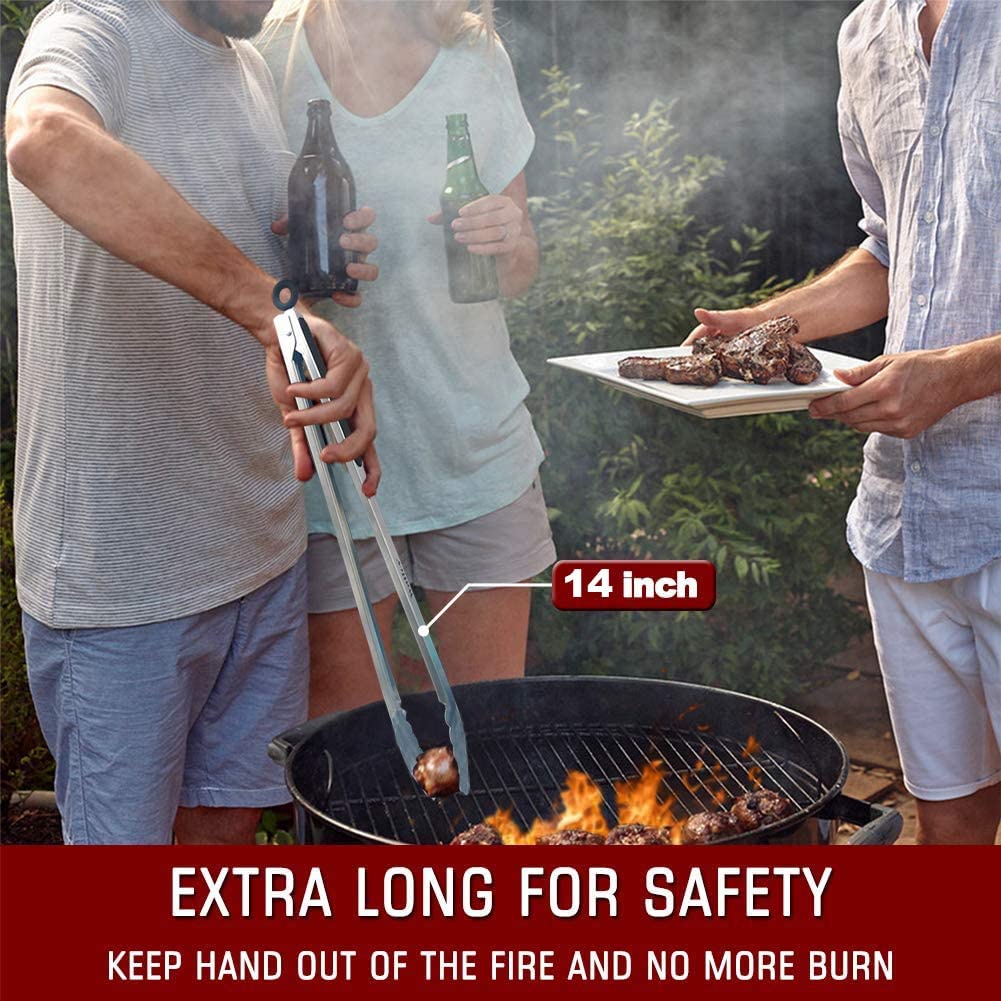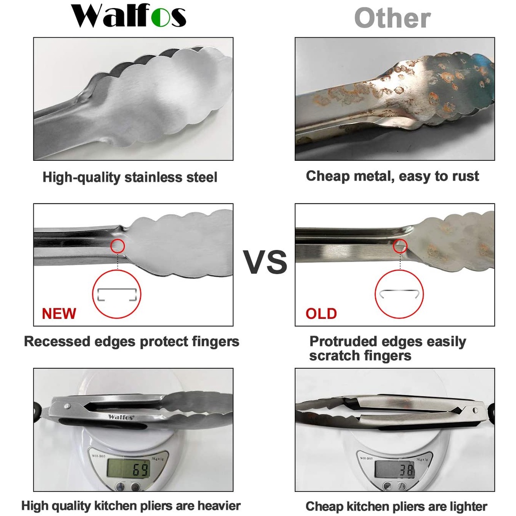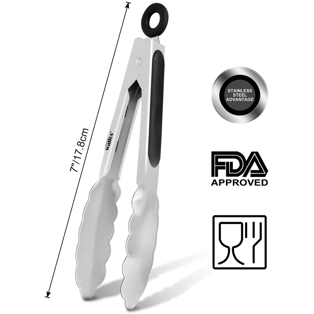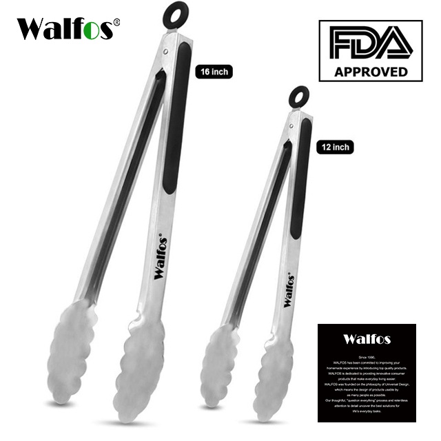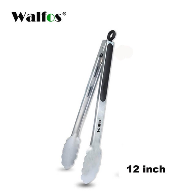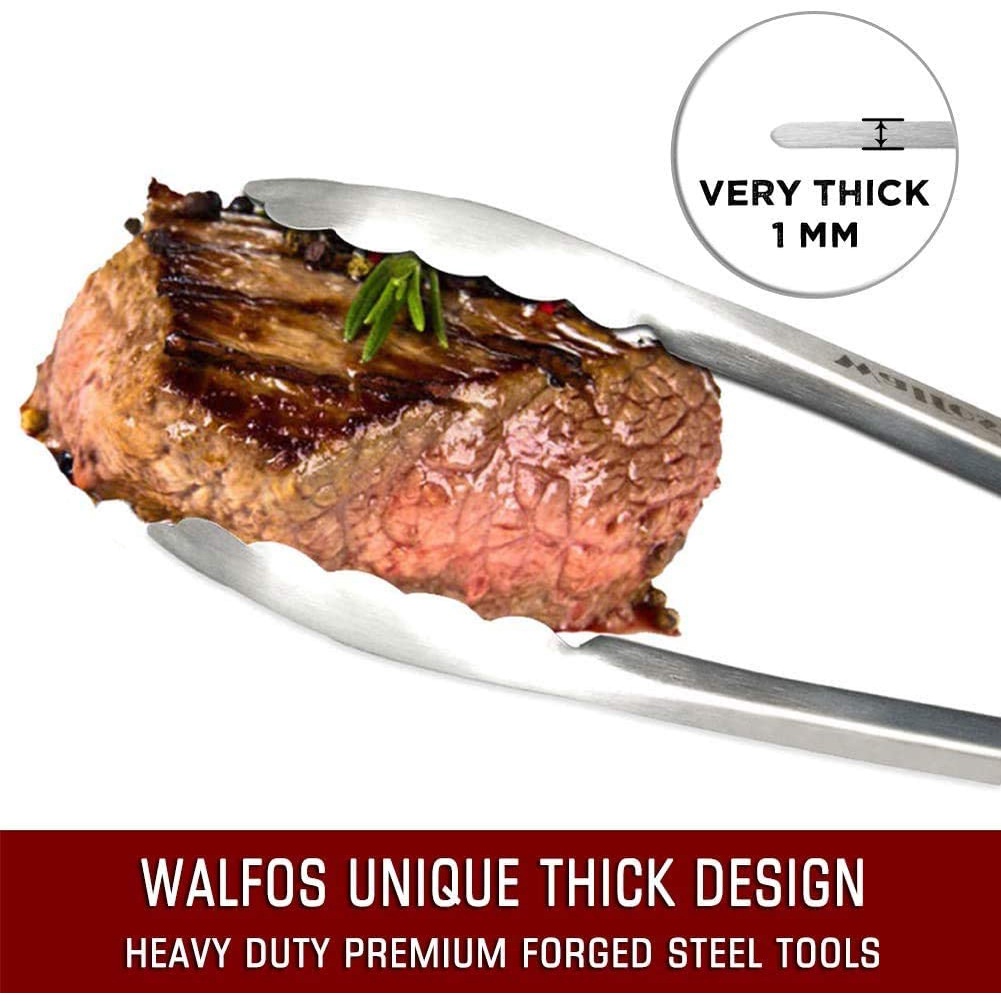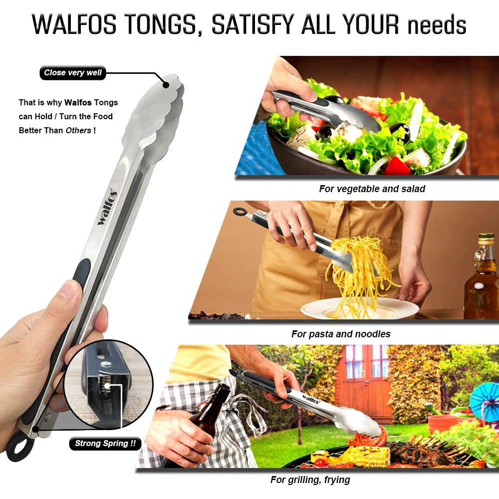 WALFOS 304 Stainless Steel Locking Grill Barbecue Clip Tongs
