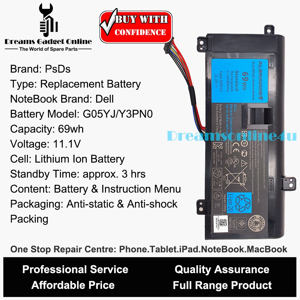 Replacement Battery Y3PN0 P39G G05YJ for Dell Alienware M14X R3 R4 R1 5200mAh
