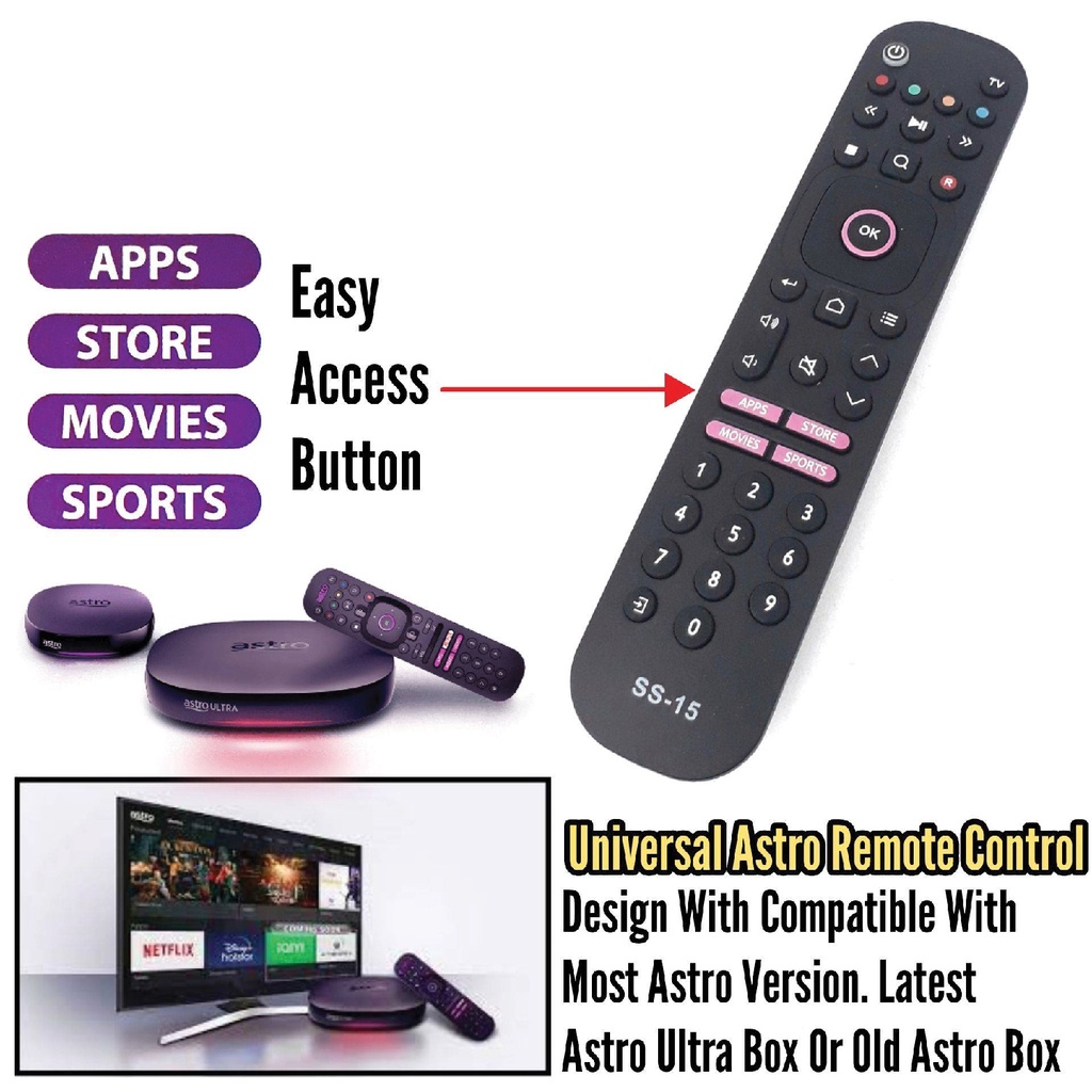 Replacement TV Remote Ultra Box UNIVERSAL SET UP BOX 15 in 1 / Alat Kawalan Jauh TV