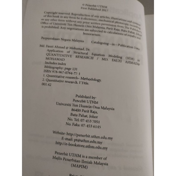 Research Books (Used): Application of Structural Equation Modeling (SEM) in Quantitative Research