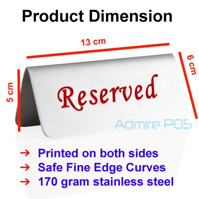 Reserved Sign Table Top Tag Stainless Steel Signage Red Black