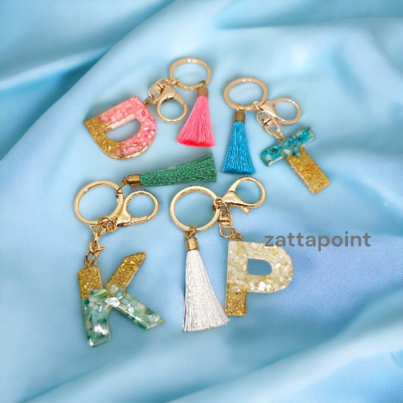 Resin Alphabet Keychain - Shell Blue Gold (READY STOCK)