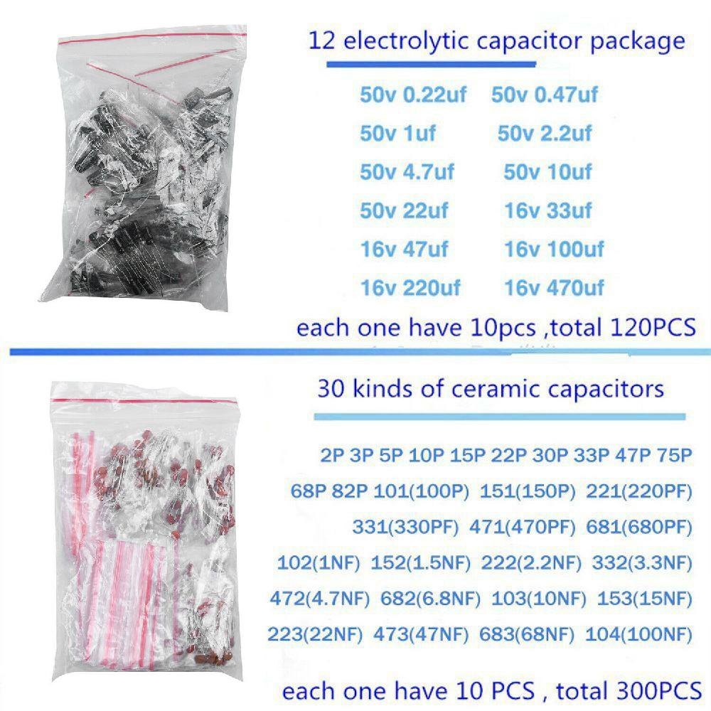 Resistor Capacitor Set 1490pcs Electronic Components Kit Package Resistor Capacitor Transistor Diode LED Set For Electrician