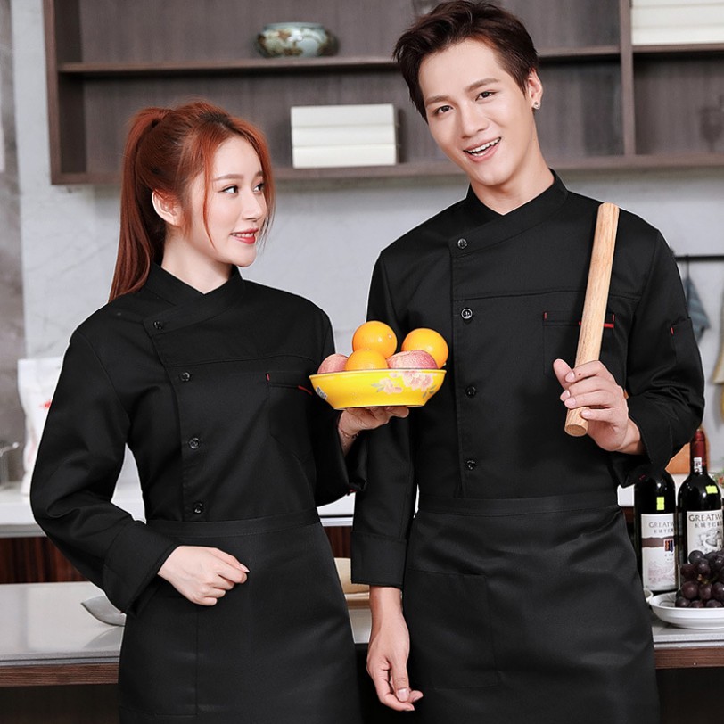 Restaurant Kitchen Chef Jacket Coat Uniform Long Sleeve Cooking Clothes Overalls