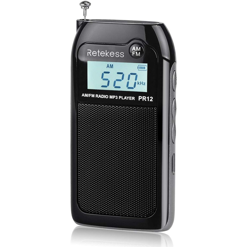Retekess PR12 Mini Pocket Radio FM AM Digital Tuning Receiver 9K/10K Rechargeable Portable MP3 Player