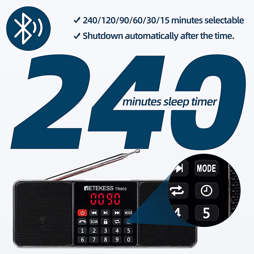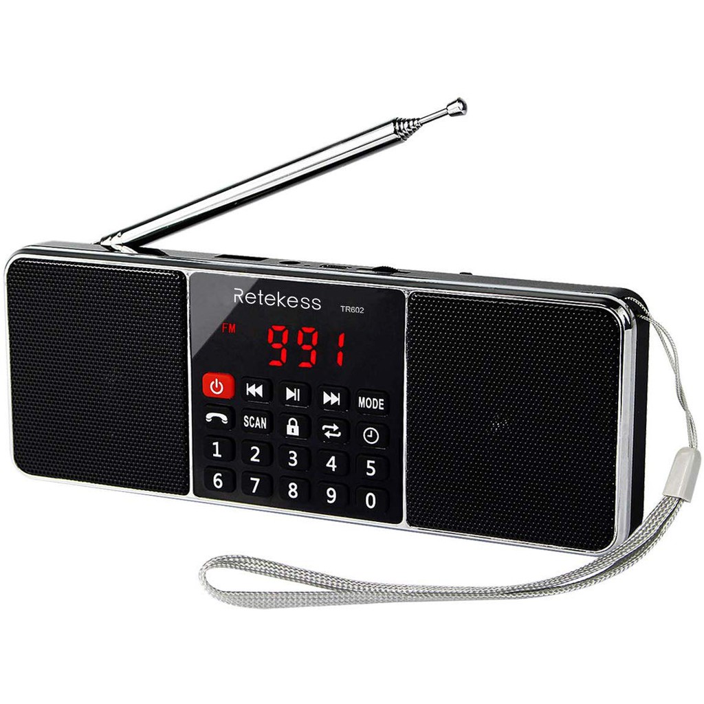 Retekess TR602 Portable Bluetooth Radio AM FM Stereo Radio with MP3 Player Speaker AUX Input Support TF Card with Bible USB drive Sleep Timer (Black)