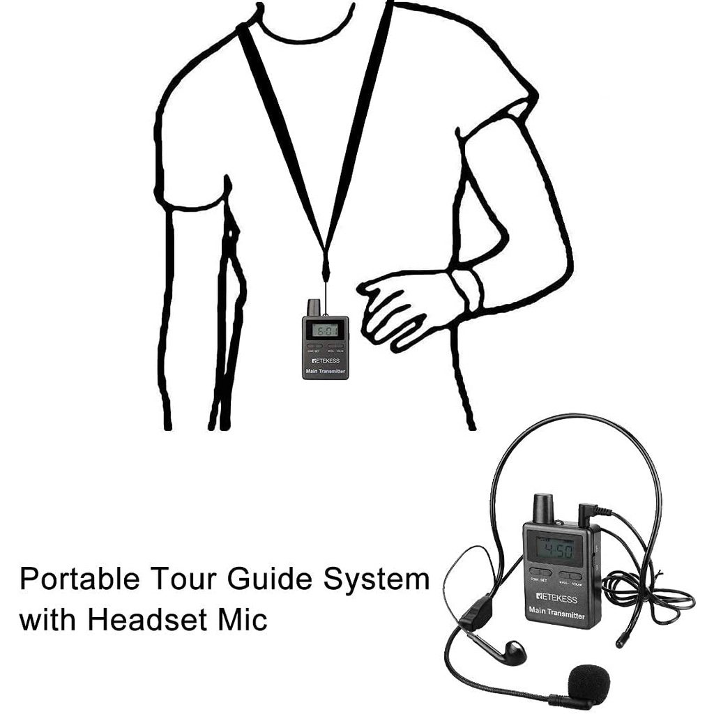 Retekess TT105 Tour Guide System 2.4GHz Two Way Multi-Channel Translation System (1 Main transmitter + 1 Vice transmitter + 30 Receiver + 1 Charging case)