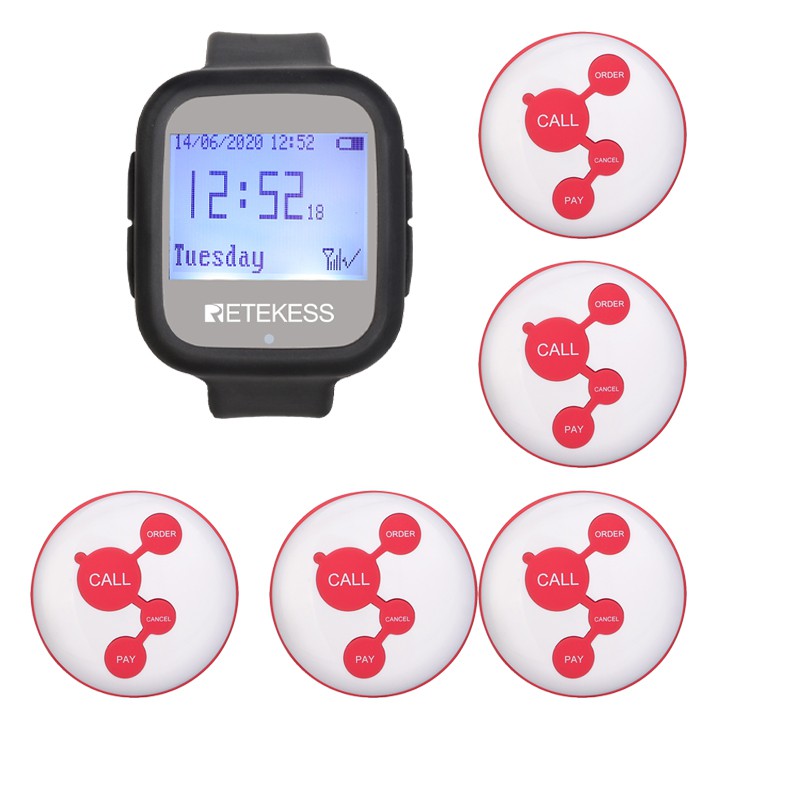 Retekess Wireless Calling System Waiter Call Pager TD106 Watch Receiver +5 pcs Call Button restaurant queue service