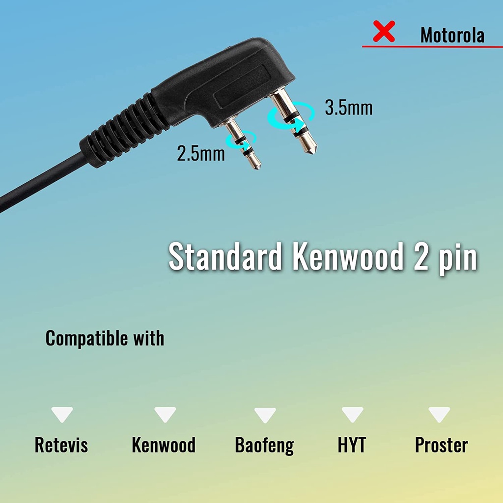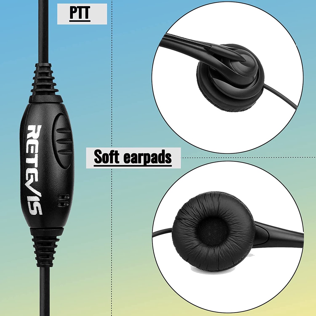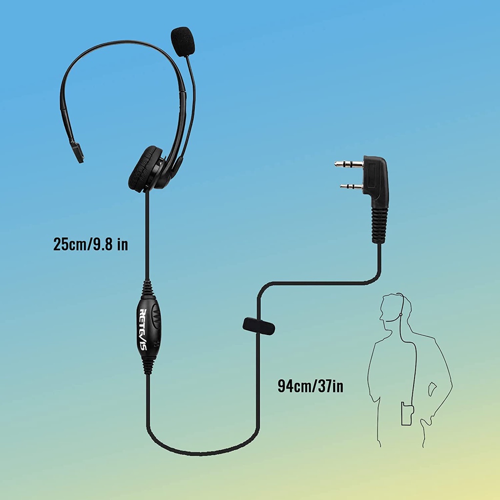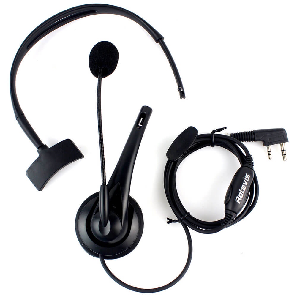 Retevis Overhead Walkie Talkie Headset with Boom Mic Kenwood 2 Pin For BAOFENG Pxton Two Way Radio