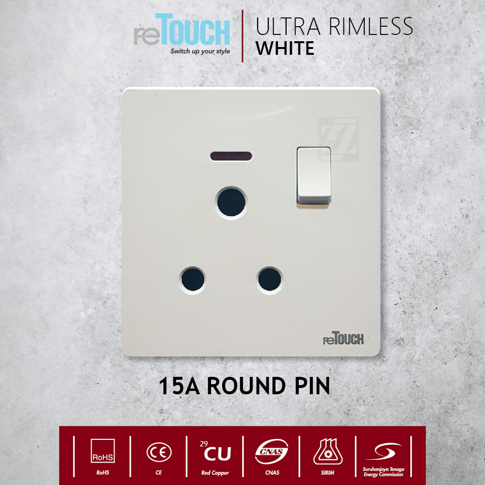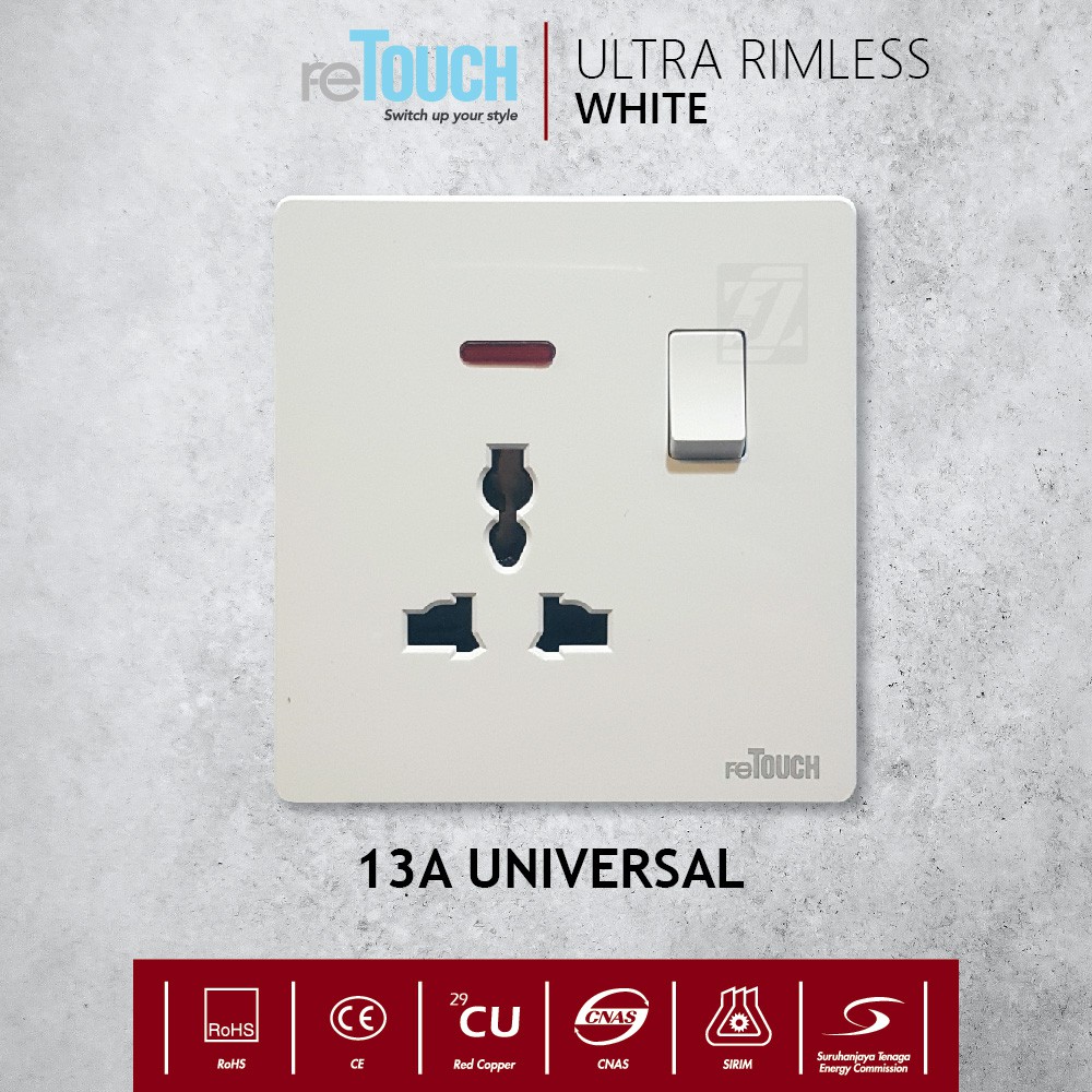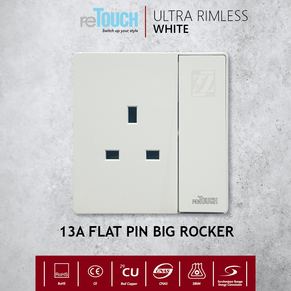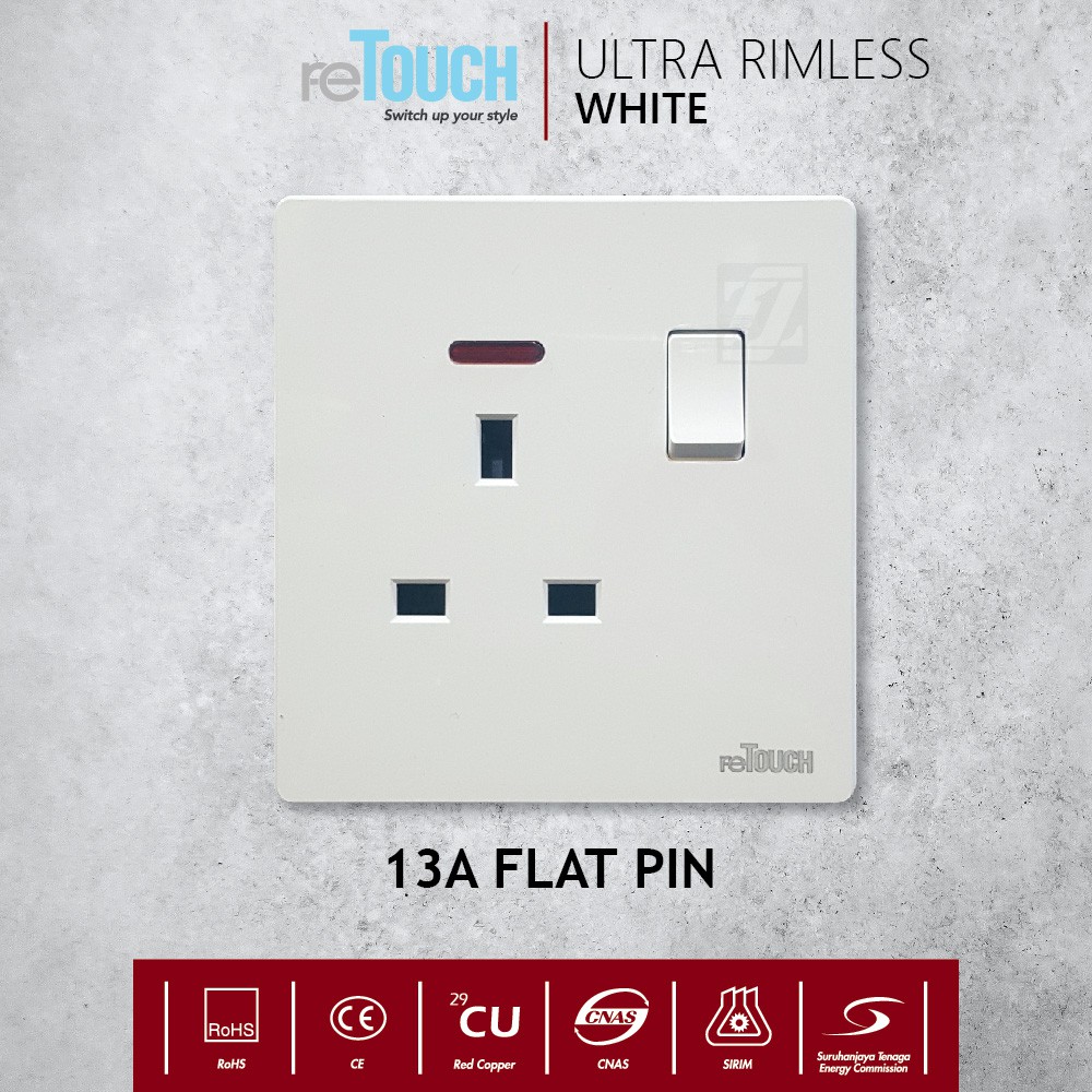 Retouch Ultra Rimless Socket 13A, 13A Big, 13A Universal, 15A Round Pin [WHITE] Sirim Suruhanjaya Modern Contemporary