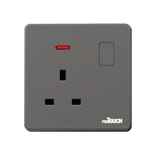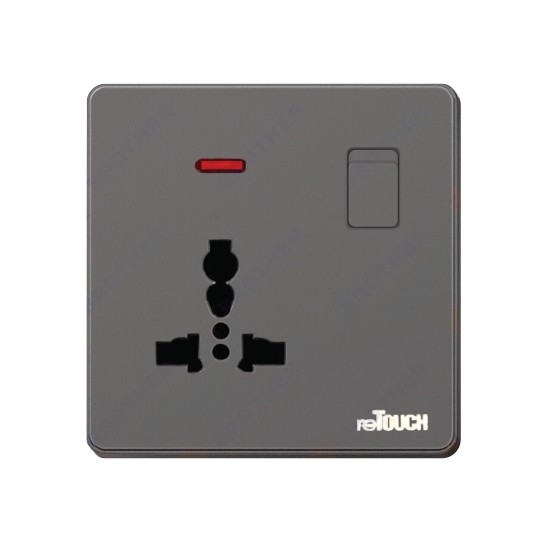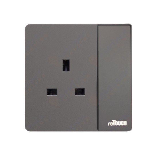 Retouch Ultra Rimless Socket and Wall Switch Slim Modern Switch Design 13A 15A 20A 45A Door Bell (Grey)