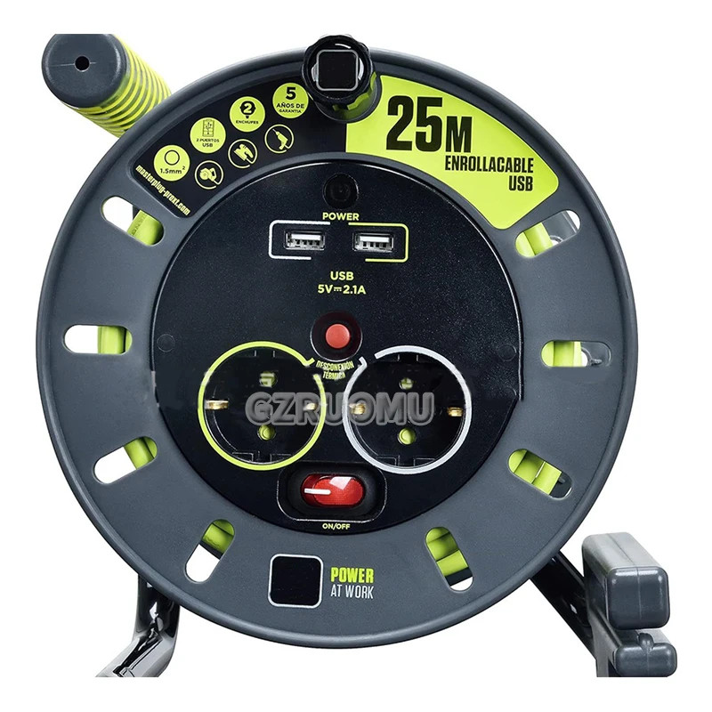 Retractable Extension Cord Camping Reel 25m Multi-Tap USB Power Indoor/Cable Reel With 1 Sockets Extension Lead Wire Rol
