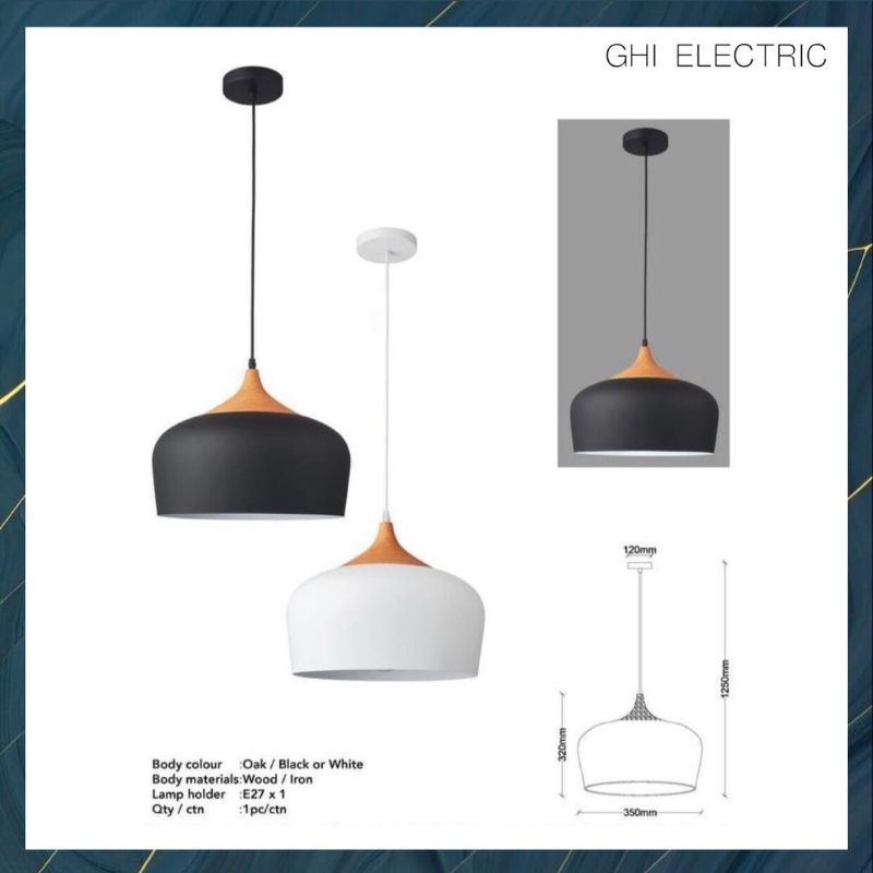 Retro Designer Pendant Light 350mm Diameter - White/Black