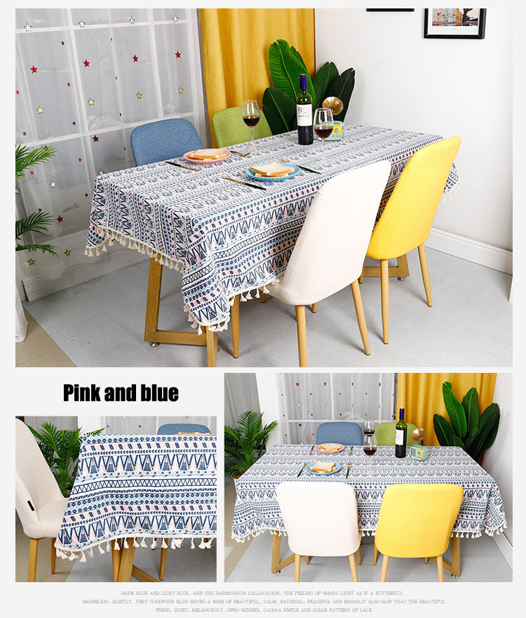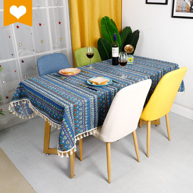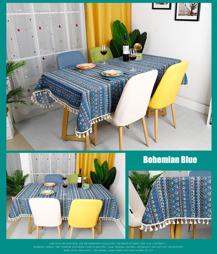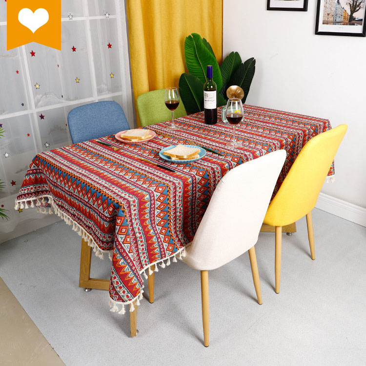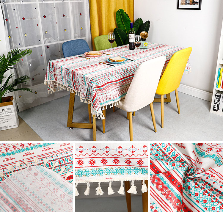 Retro Ethnic Style Floral Print Stripes Tablecloth Bohemian Tassel Coffee Table Cloth Rectangular Tablecloths