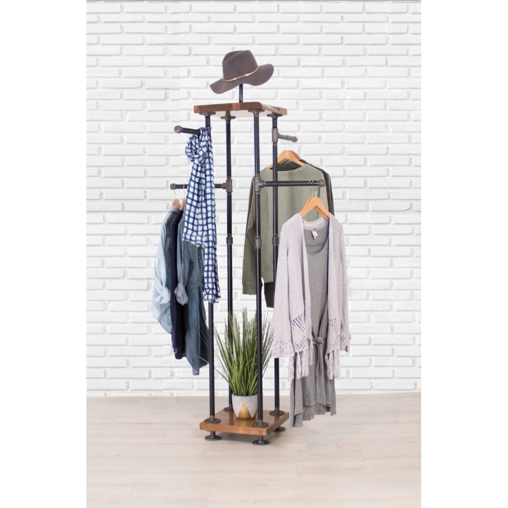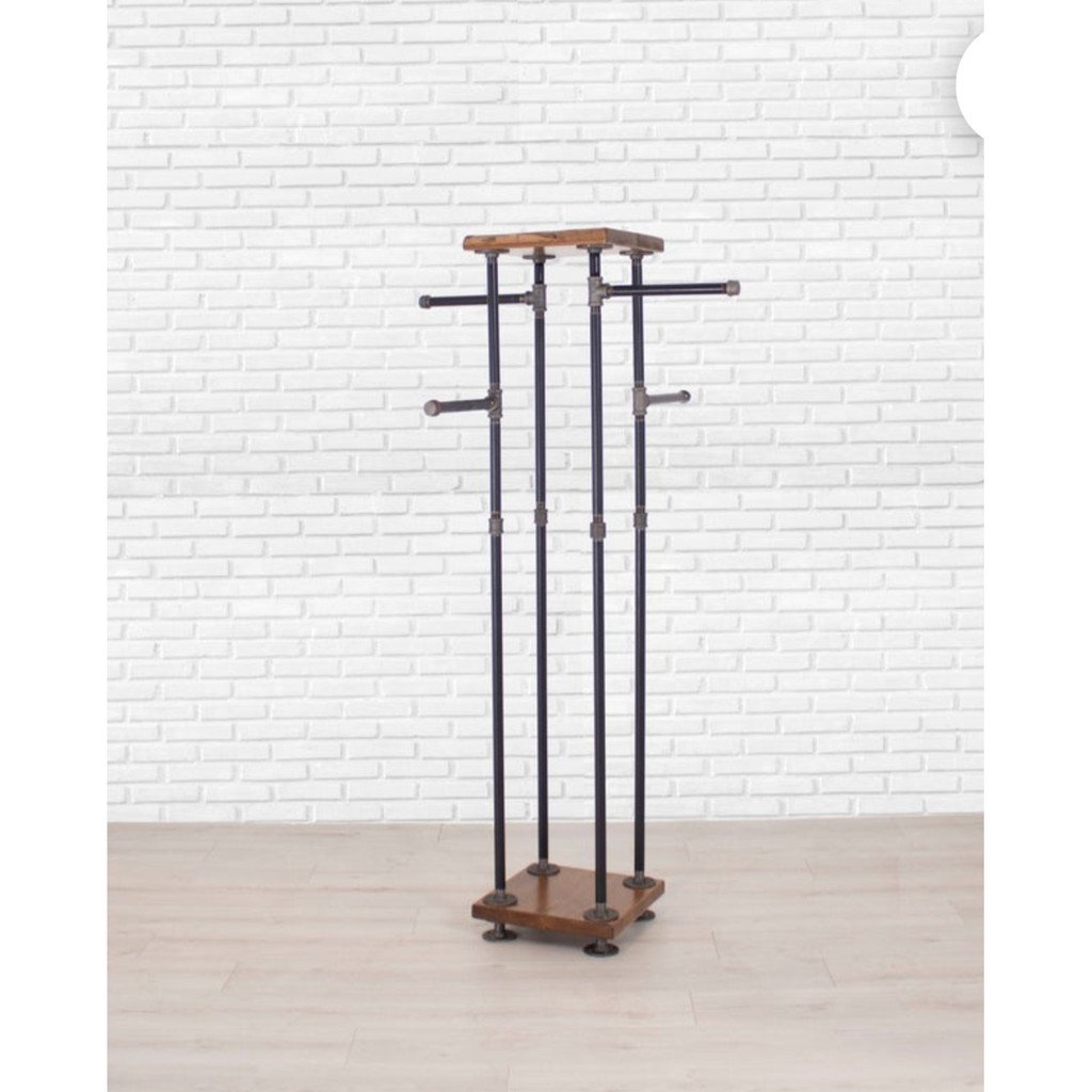 Retro Loft Style Natural Solid Hardwood + Galvanised Iron Pipe Clothes Rack
