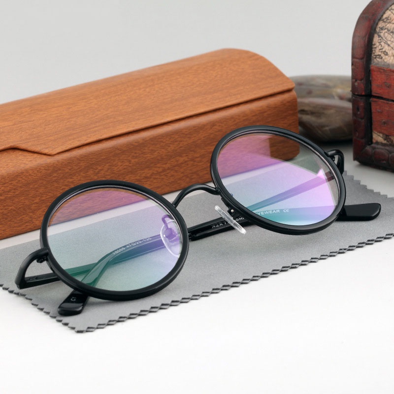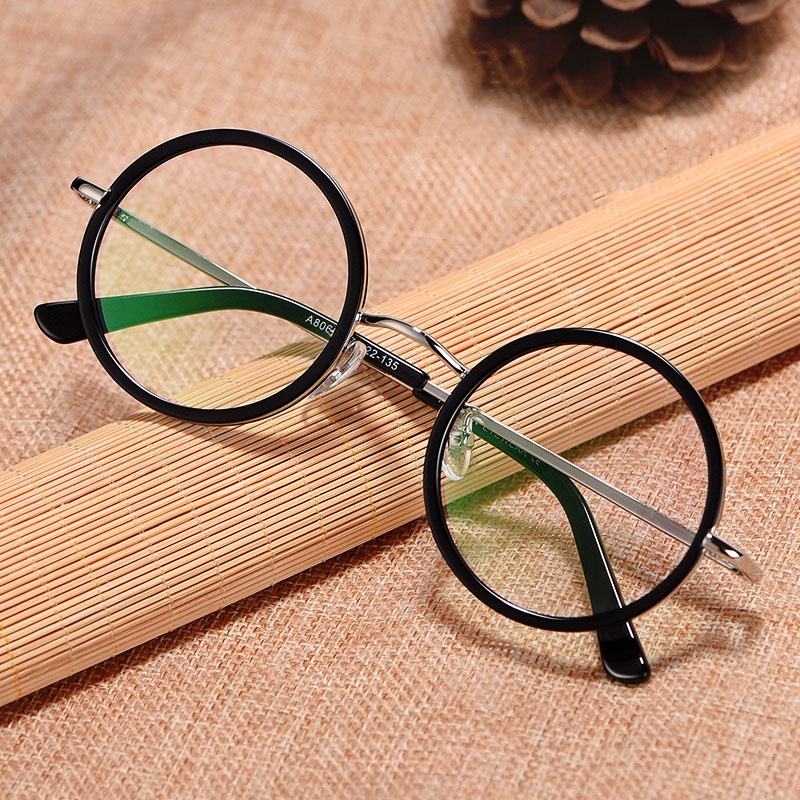 Retro Round Glasses Frame Men Women Flat Light Decorative Eyeglasses Frame 8068