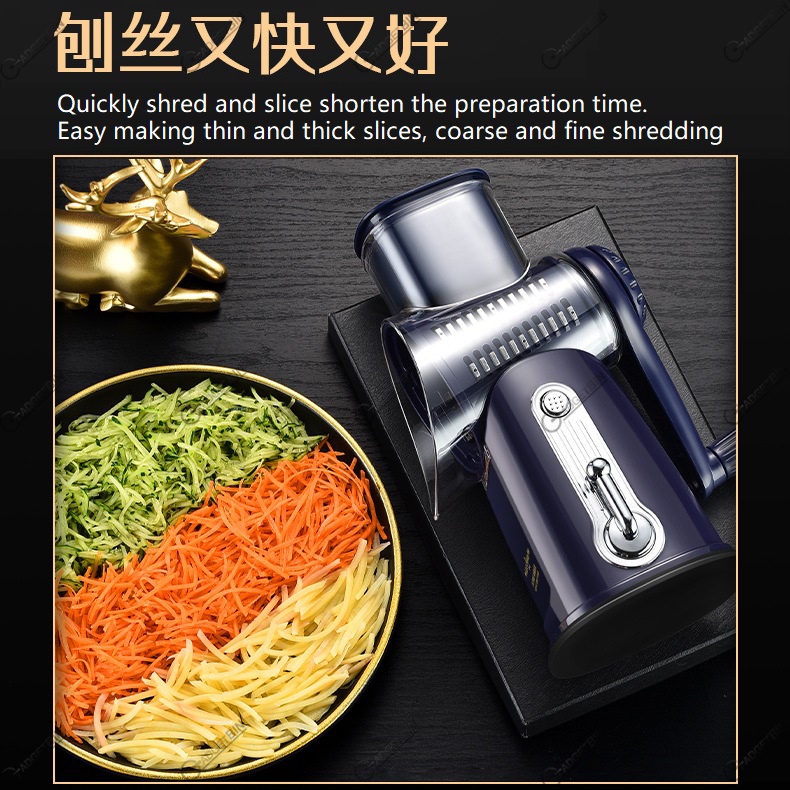 Retro Style 7 in 1 Multifunctional Rotary Vegetable Slicer Grater Chopper Cutter with 5 types Interchangeable Blade