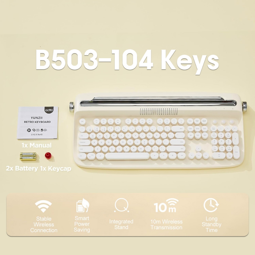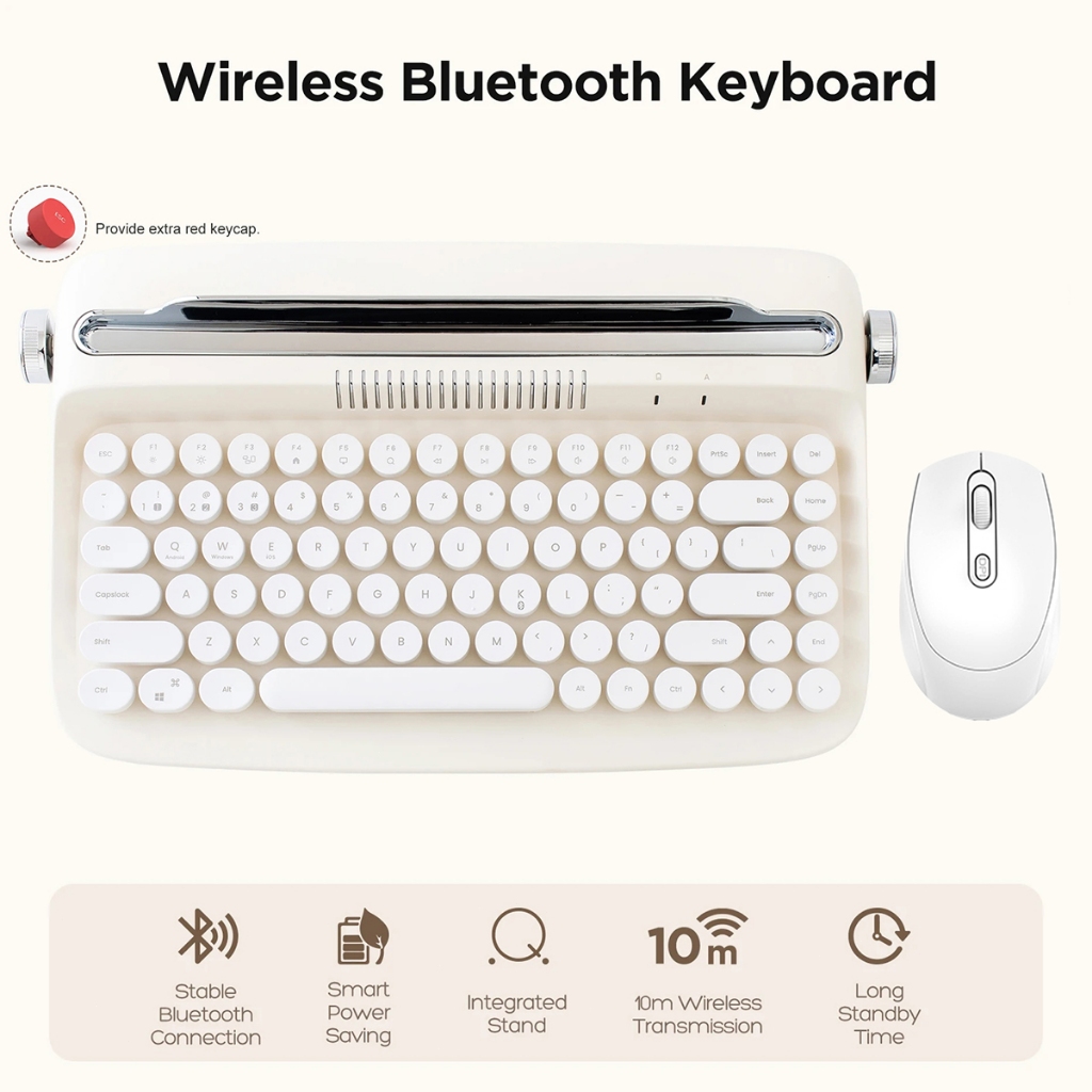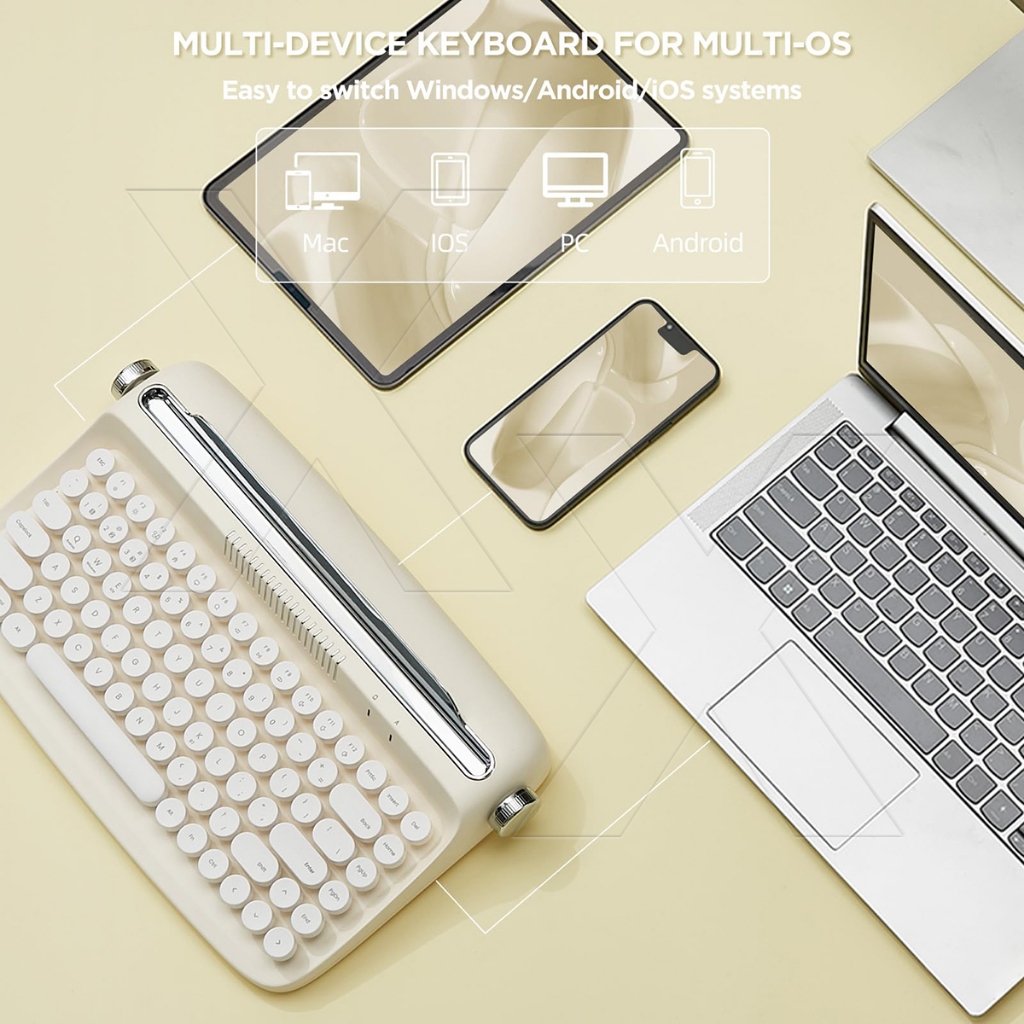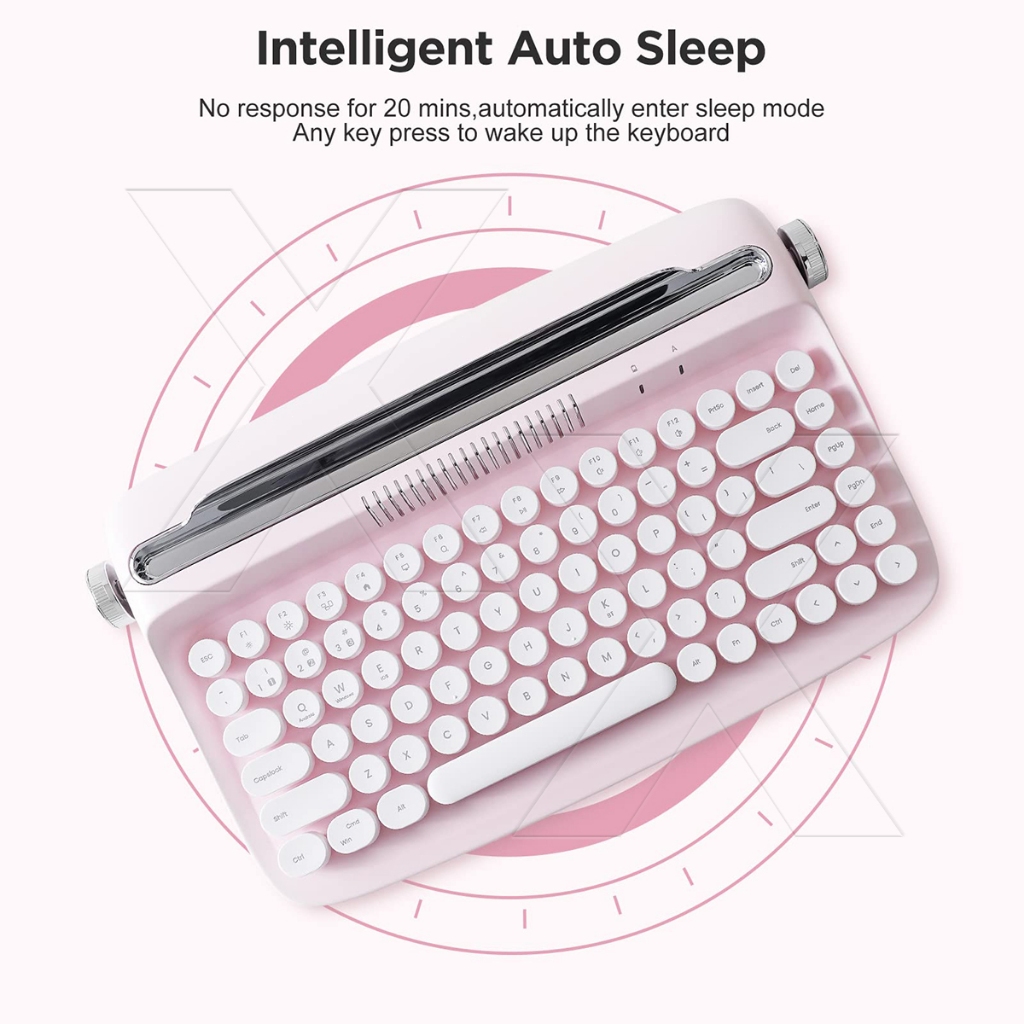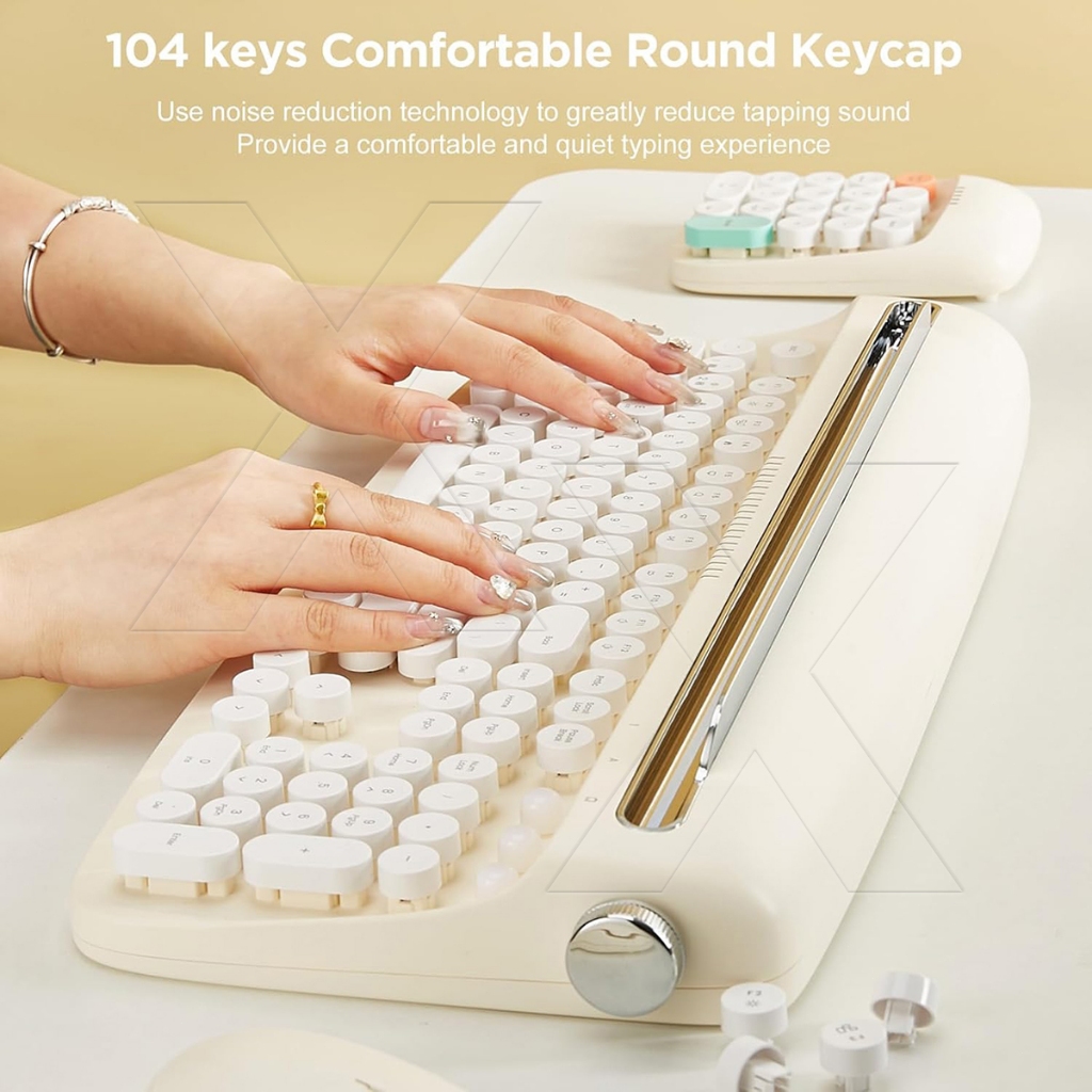 Retro Wireless Keyboard Typewriter Bluetooth 5.0 Keyboard Round Keycaps 84/104 Key For Windows/Mac Android/IOS