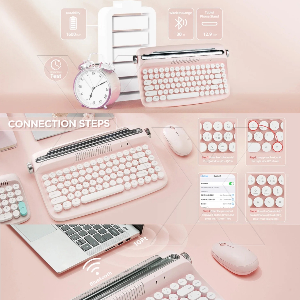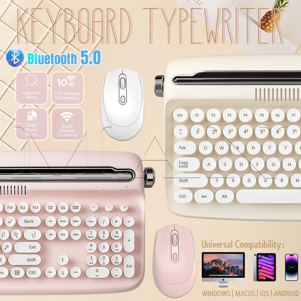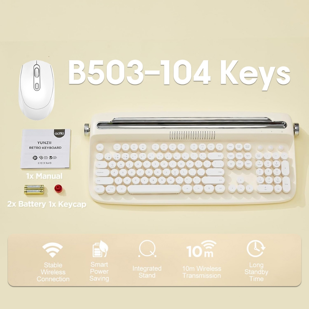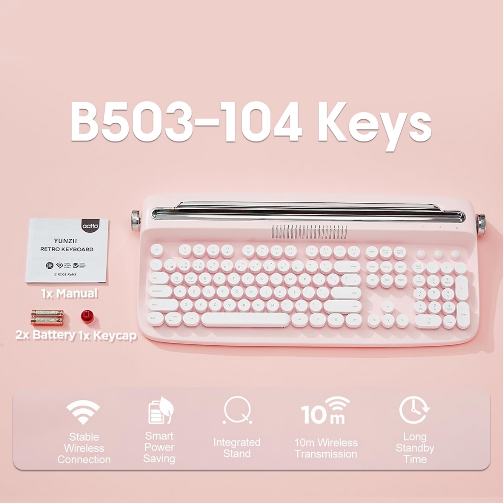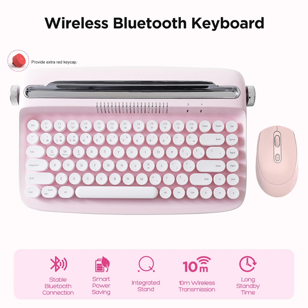 Retro Wireless Keyboard Typewriter Bluetooth 5.0 Keyboard Round Keycaps 84/104 Key For Windows/Mac Android/IOS