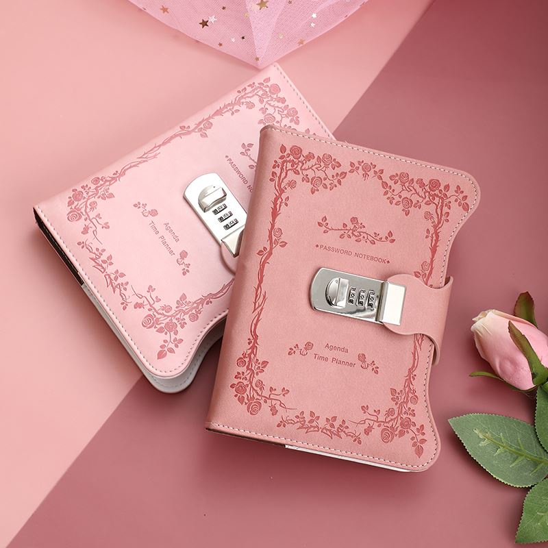 Retro cipher book with lock creative diary simple student writing notebook Japan and South Korea thickened girl's hand ledger notebook stationery thickened cipher lock Notepad