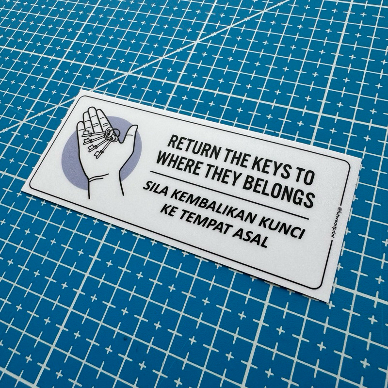 Return Put Give Back Keys. Kembalikan Letak Bagi Balik Kunci. Premium Sticker Sign Signage Notice Reminder Peringatan.