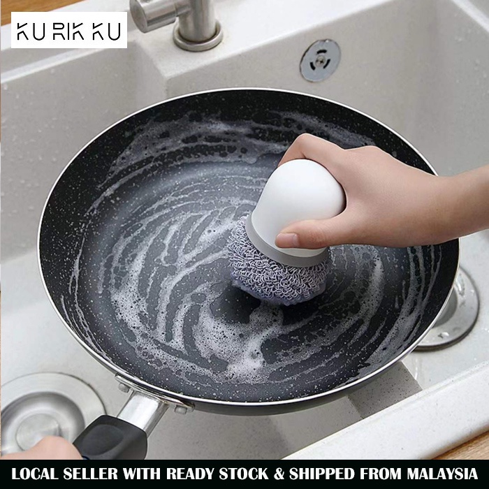 Reusable Mesh Handle Dish Scrubber Dishes Sponges Nylon Ball Scrubber Replaceable Dish Washer Nanofiber Sponge Scourer