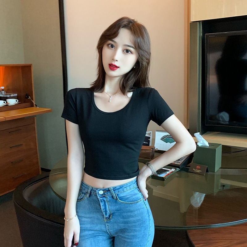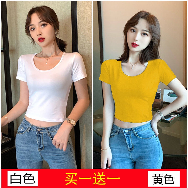 Revealing Navel Short Sleeve T-shirt Women's Wear 2020 New Summer Short High Waist Top Slim, Tight, Sexy and Thin Base Coat