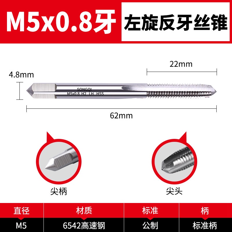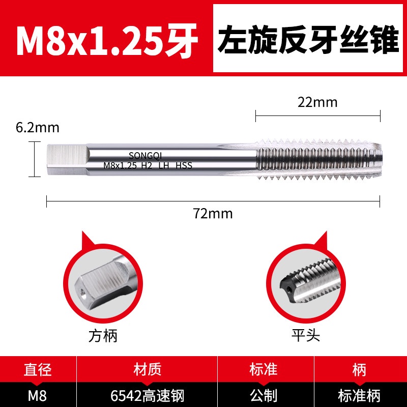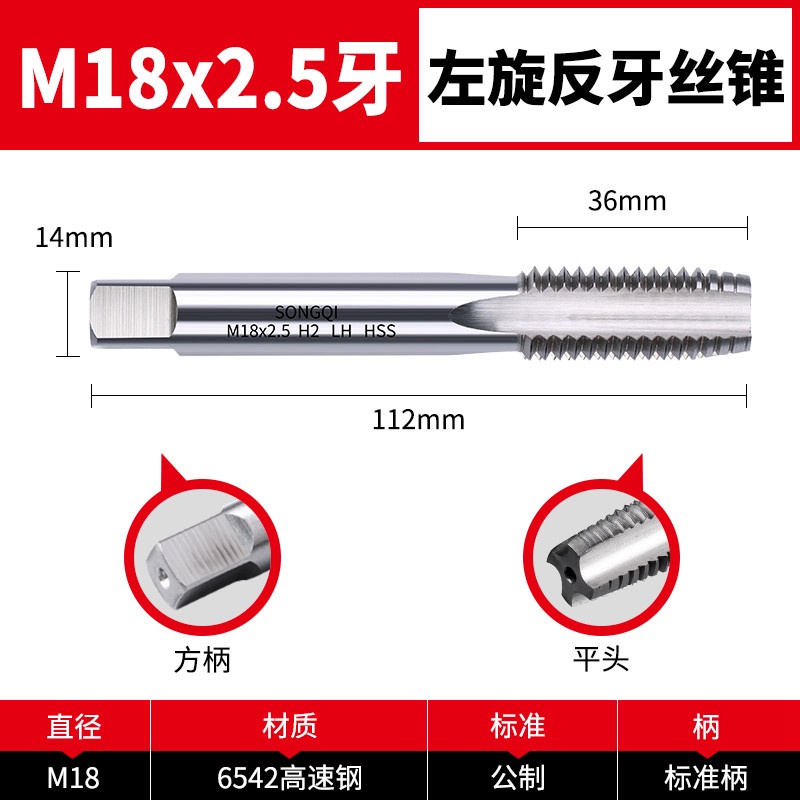 Reverse thread tap, left-hand left-hand thread tap drill bit, m3m4m5m6m8m10m12m