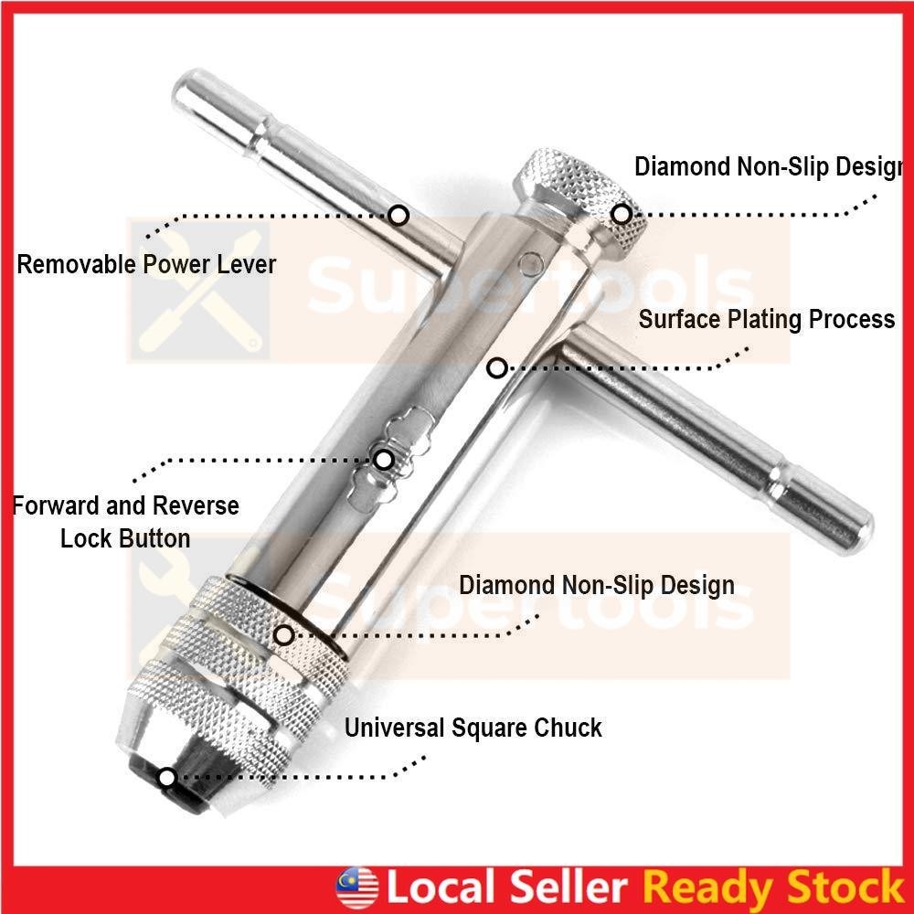 Reversible Ratchet Screw Tap Bit Holder Wrench T-Shaped Handle Hand Threading Tapping Tool Steel Alat Ketuk Rengkuh