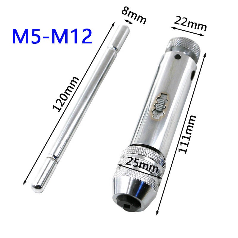 Reversible Screwdriver Tap Holder 6pcs Screw Tap Wrench Set T-Shaped M5-M12/M3-M8Wrench Threading Tapping Hand Tools
