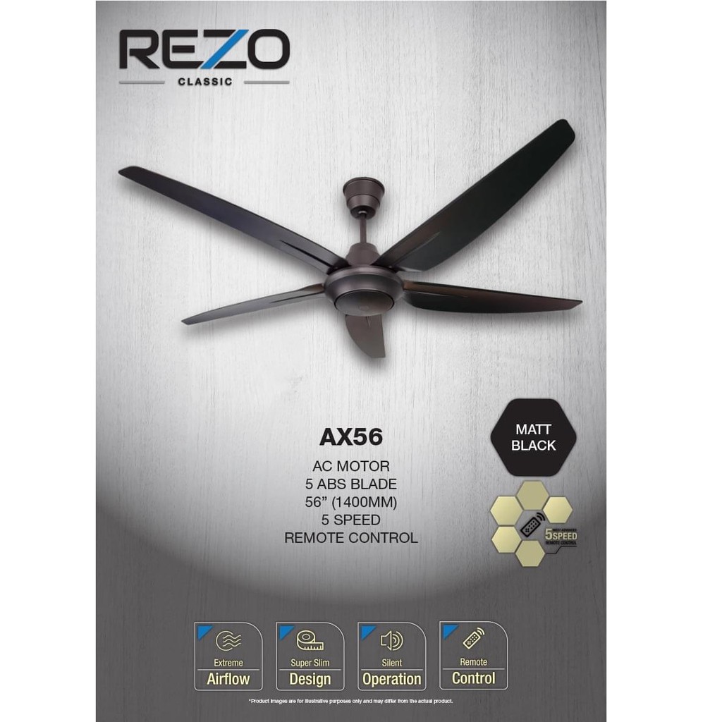 Rezo Ceiling Fan (56 Inch/Matt Black) Remote Control 5-Speed Ceiling Fan AX56 deka Kipas Siling with Timer - Homehero2u