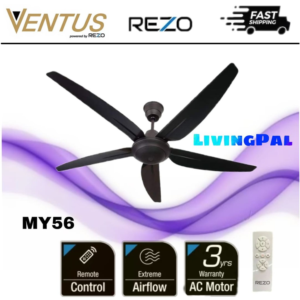 Rezo Ventus MY56 Remote Ceiling Fan [READY STOCK] 5 Blades 56"5B Speed 3 Years Warranty AC Motor kipas siling