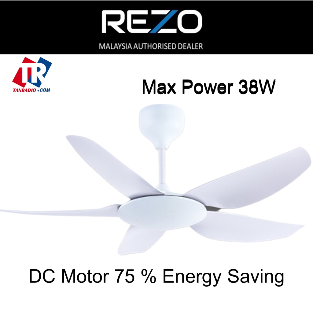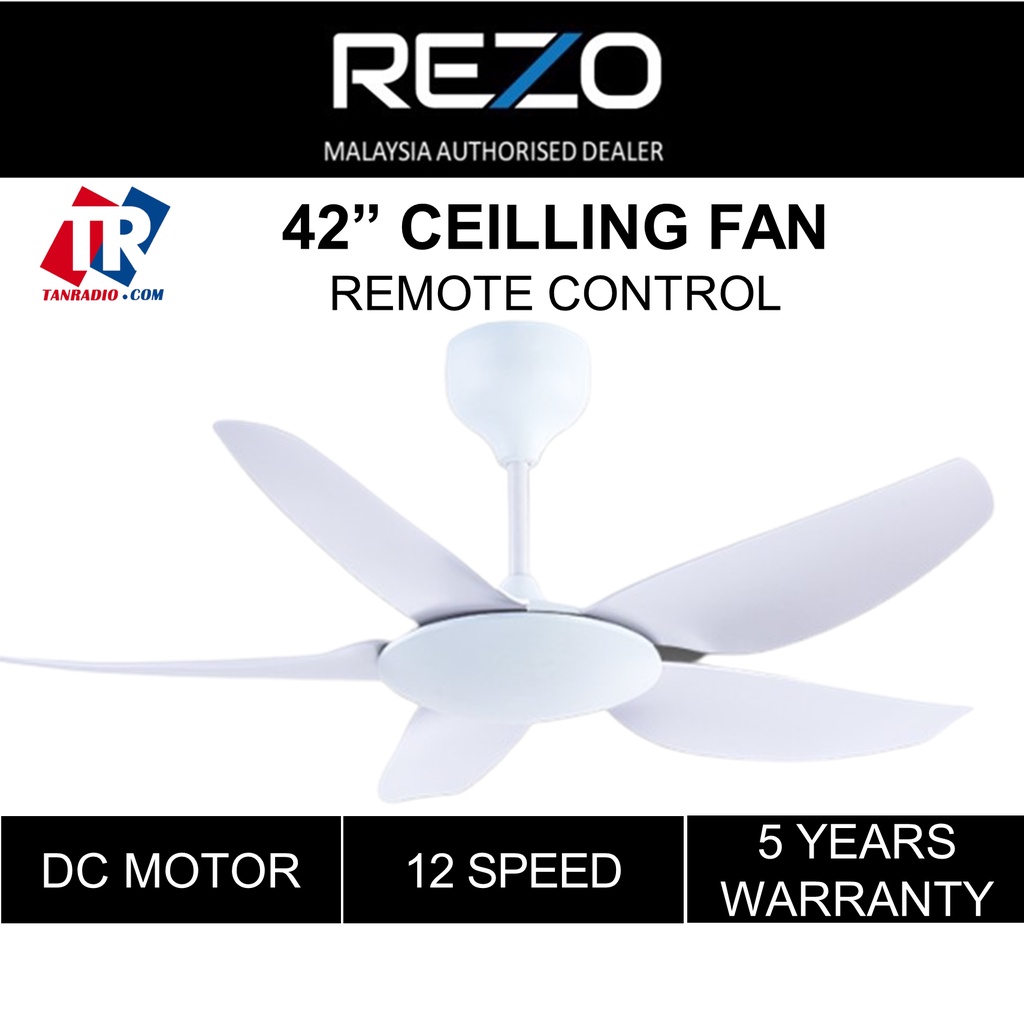 Rezo ZETTA 42" Ceilling Fan ( White ) Remote Control - Kipas Silling