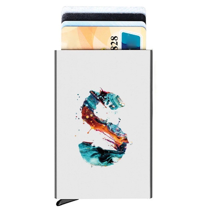 Rfid Credit Card Holder MetalSlim Anti-theft Wallets Pop Up Minimalist Wallet Silver Metal Purse Paintletters Pattern