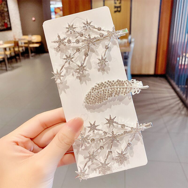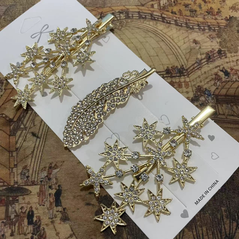 Rhinestone Star Side Hair Clips - Fashionable Sparkling Hairpins for Girls' Hair Accessories