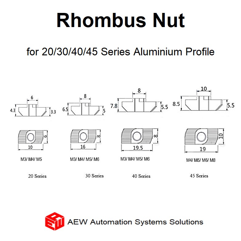 Rhombus Nut/ T Nut/ Hammer Head Fasten Nut Connector T Rhombus/ T SLOT NUT For 20/30/40/45 Series Aluminium Profile