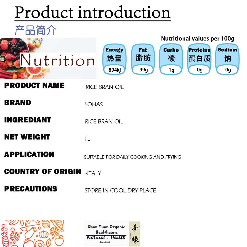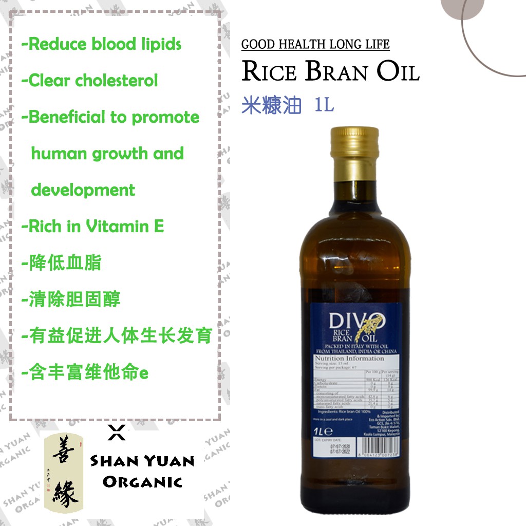 LOHAS-Divo Rice Bran Oil(NON GMO) 米糠油(非转基因)1L [SHAN YUAN ORGANIC / 善缘有机]