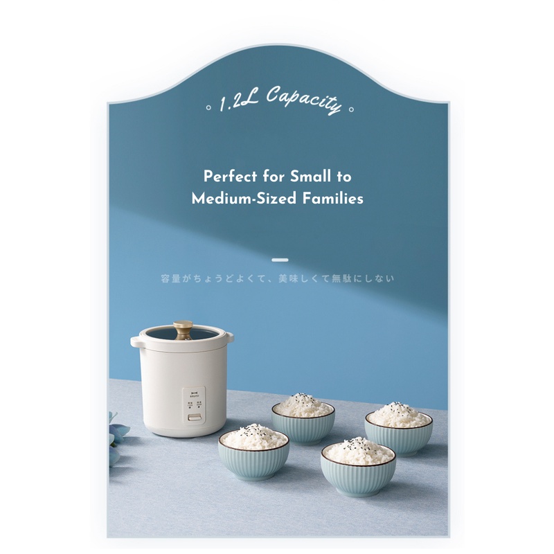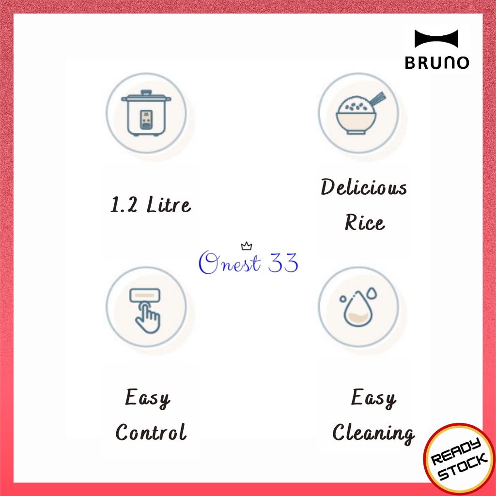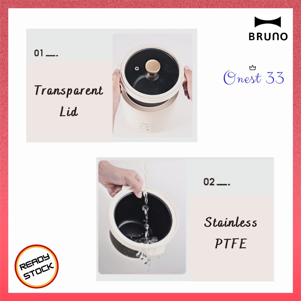 Rice Cooker Japan Bruno 1.2L Mini Retro Rice Electric Cooker Multipurpose Non-stick With Transparent Glass Lid (1-2pax)