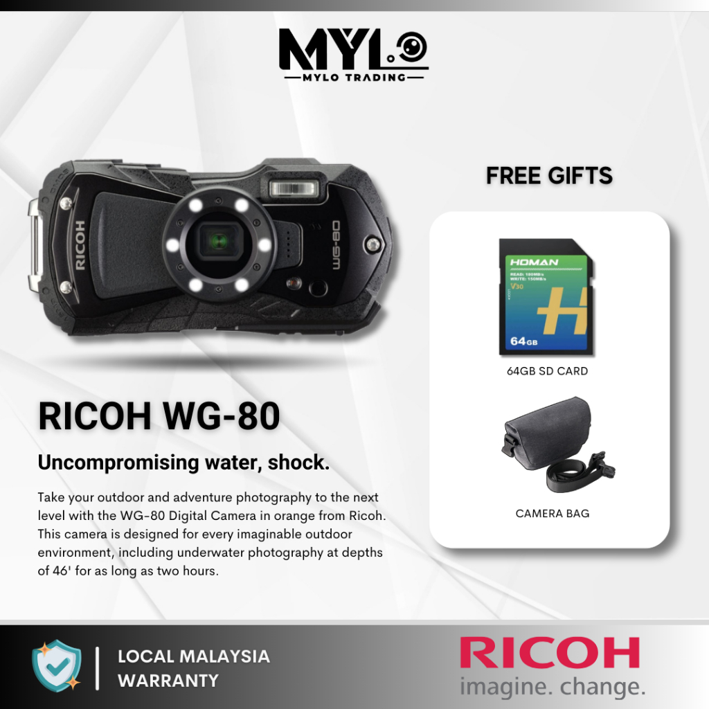 Ricoh WG-80 | WG-1000 Digital Camera WG80 Waterproof Camera +64GB +Bag