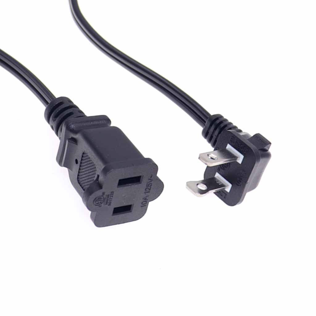 Right Angled Polarized US 2-Prong Male to Female Extension Cord, Nema 1-15P to 1-15R Power Outlet Extension Cable 18AWG 0.5m/3m