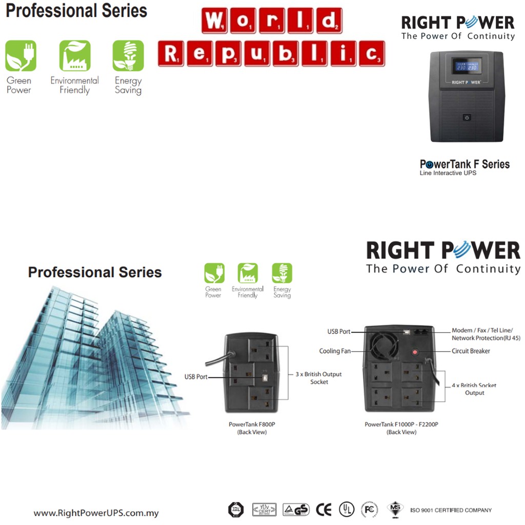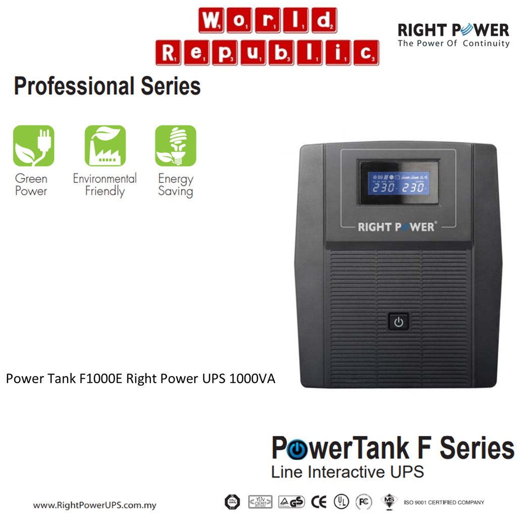 Right Power Powertank F1000E 1000VA UPS - PowerTank F1000E Right Power UPS 1000VA