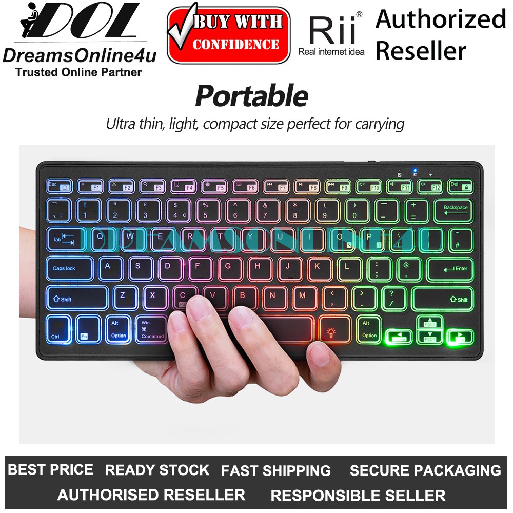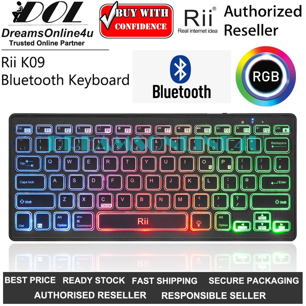 Rii K09 Bluetooth Multimedia Keyboard with RGB Backlit Silent Light Thin Portable Rechargeable