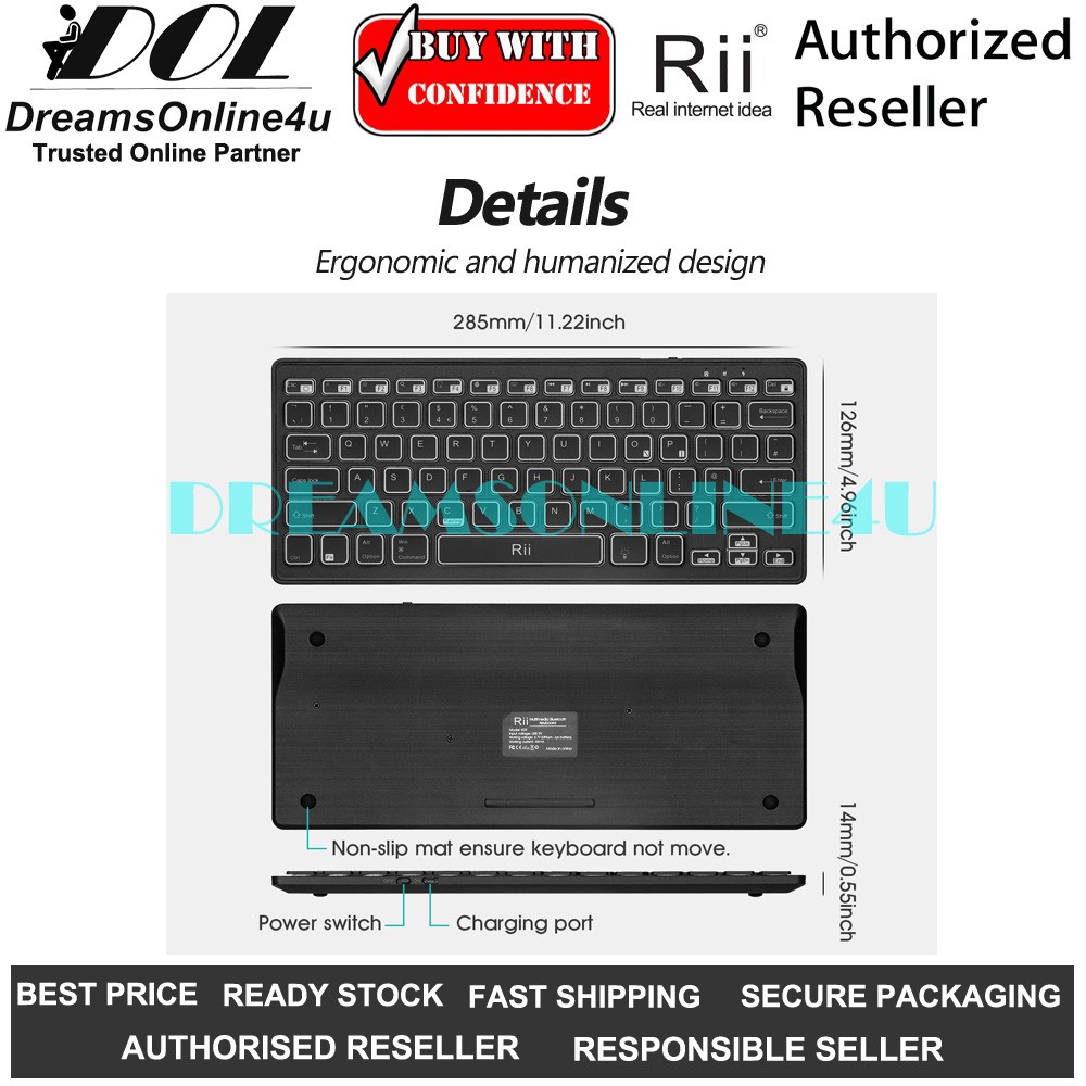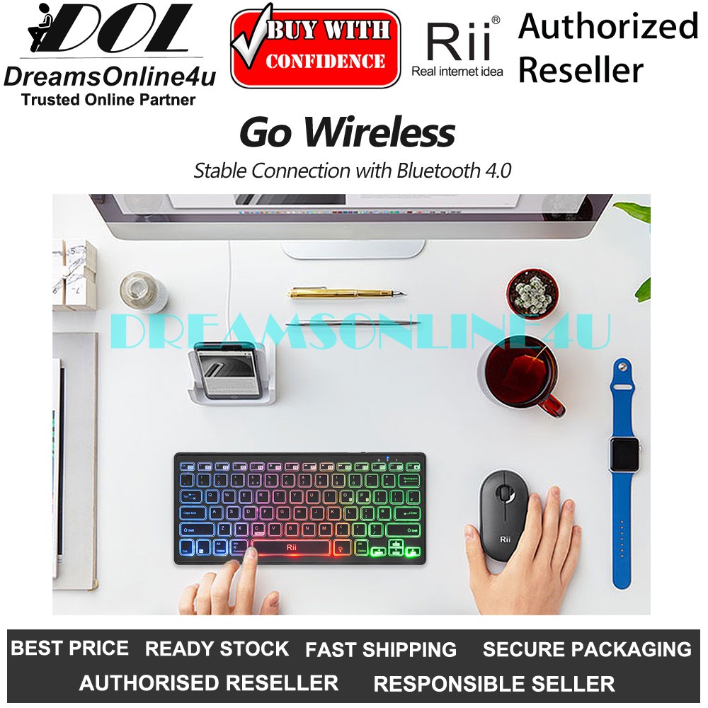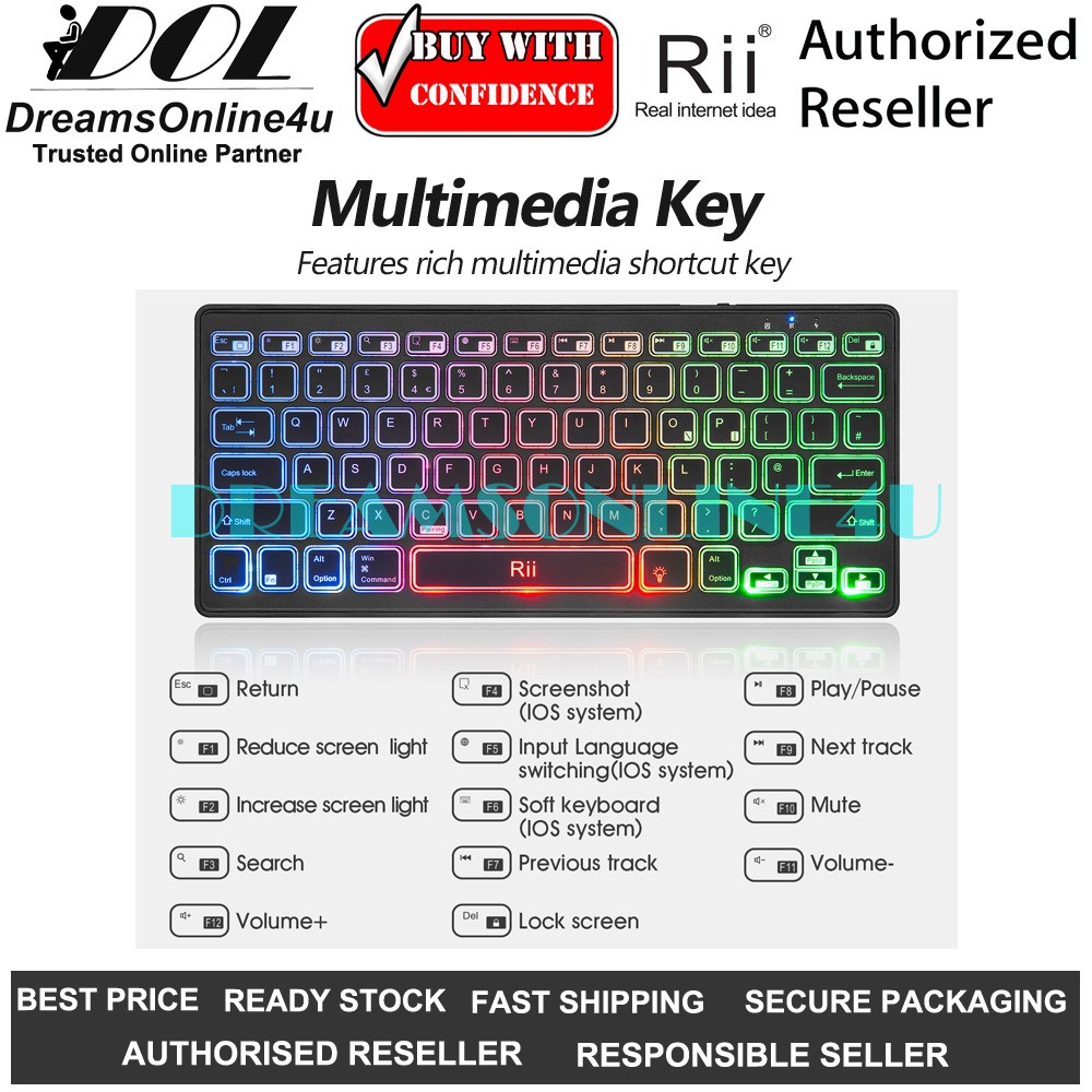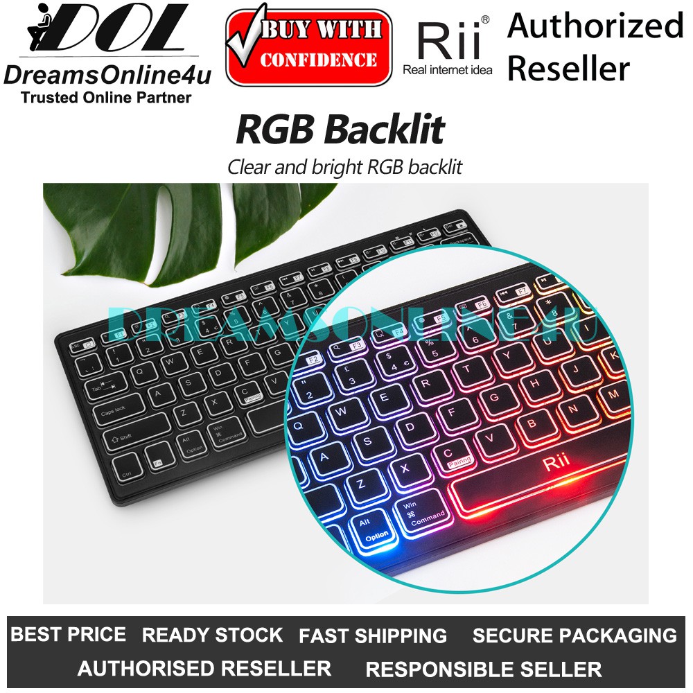 Rii K09 Bluetooth Multimedia Keyboard with RGB Backlit Silent Light Thin Portable Rechargeable