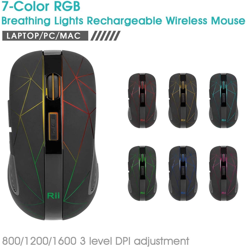 Rii RM200 Wireless Mouse 2.4G Wireless Mouse 5 Buttons Rechargeable Mobile Optical Mouse with USB Nano Receiver,