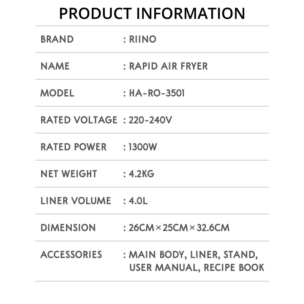 Riino Rapid Penggoreng Udara XL (4L) - AF3501 Air Fryer