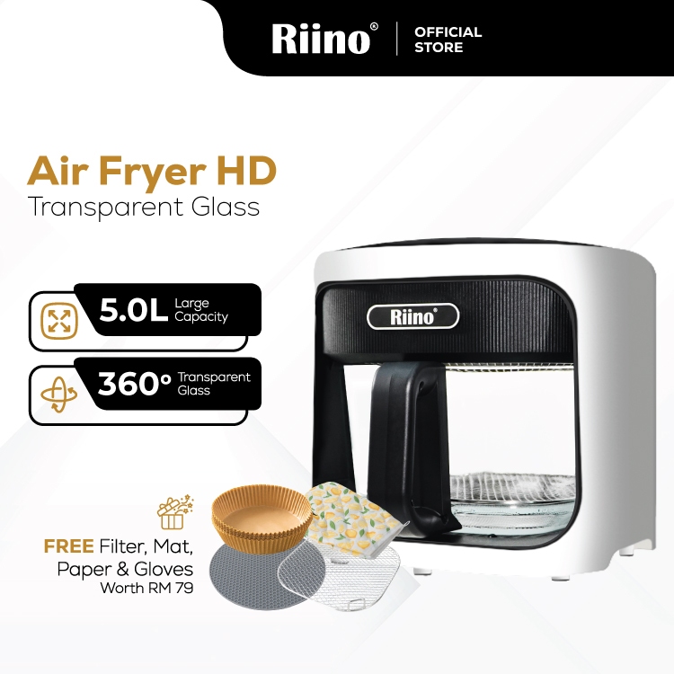 [Upgrade Ver.] Riino Steam Air Fryer Oven HD Dual Heat AI Technology Tough Glass Basket (5.0L) GMAF06